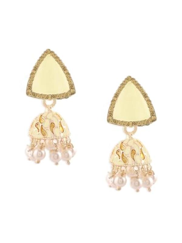 Add a pop of color to your look with these beautiful orange enamel ethnic style jhumki earrings. Perfect for women who love unique and stylish accessories.