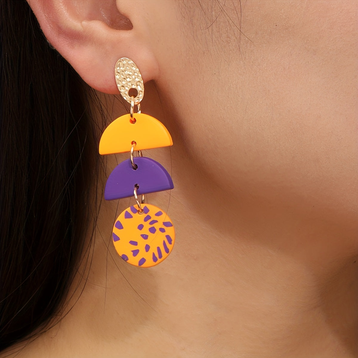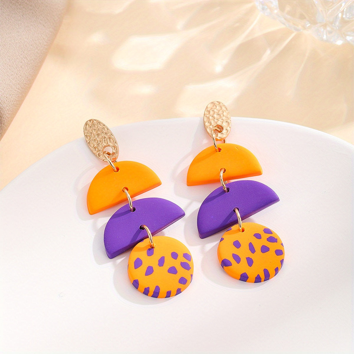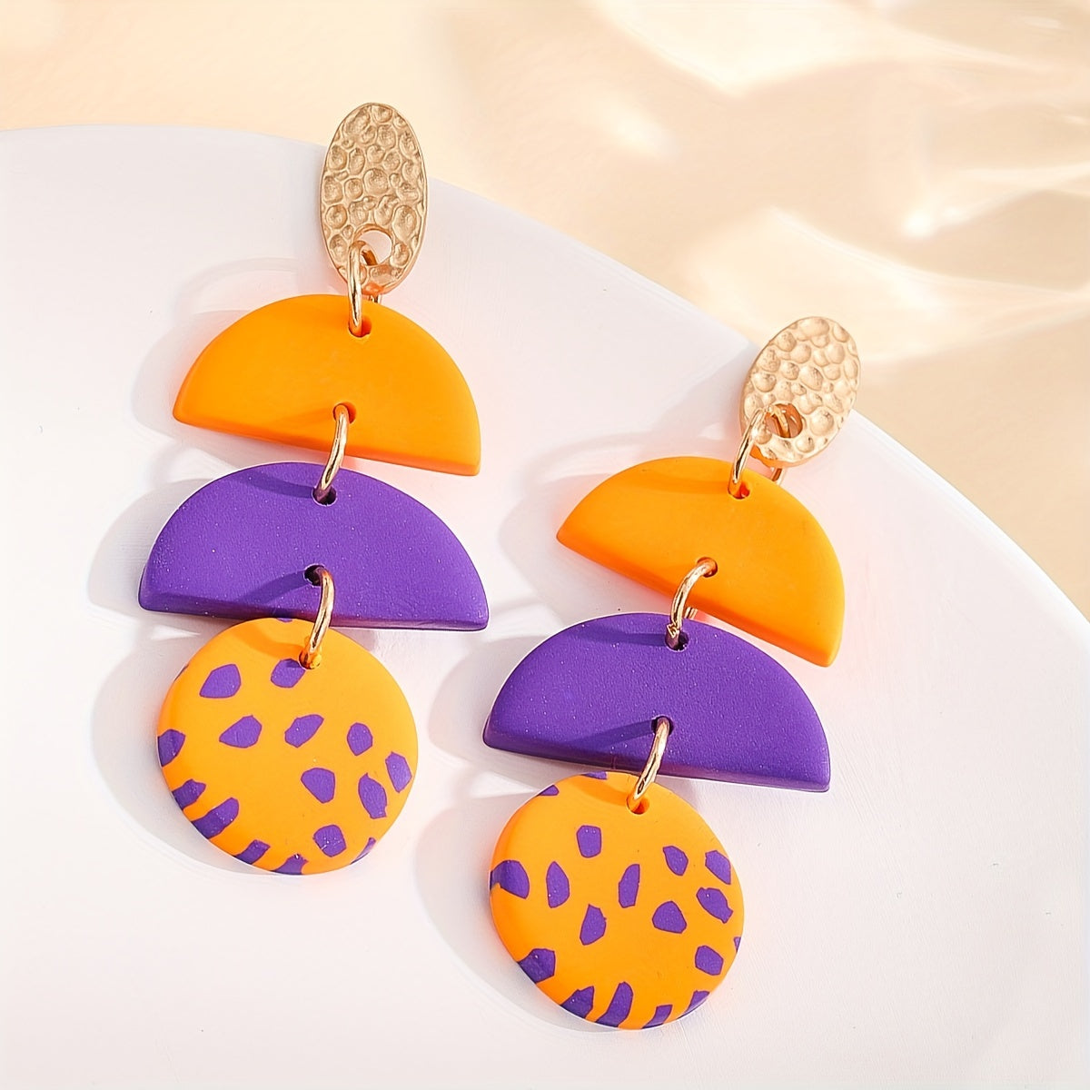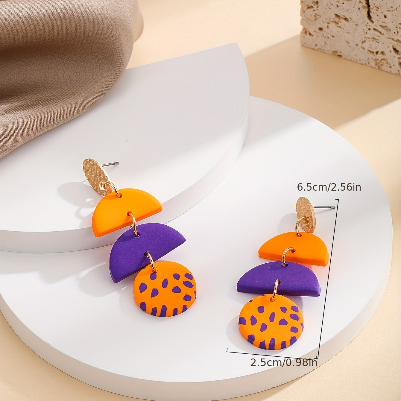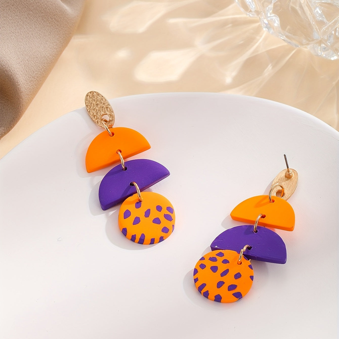 These delicate orange and purple dangle earrings are perfect for adding a pop of color to any outfit. Handcrafted from polymer clay, they are lightweight and comfortable to wear.