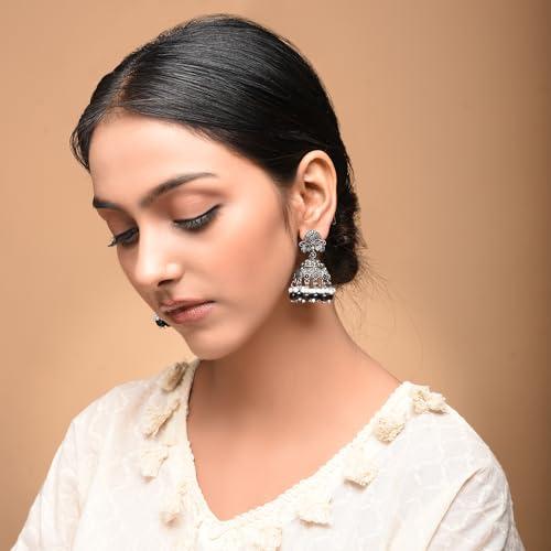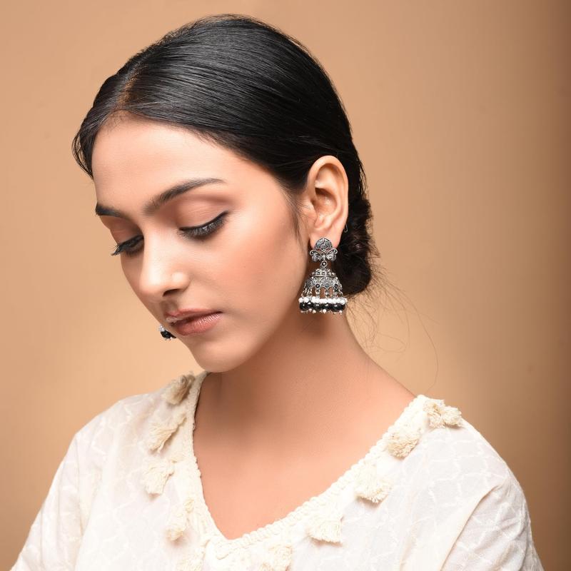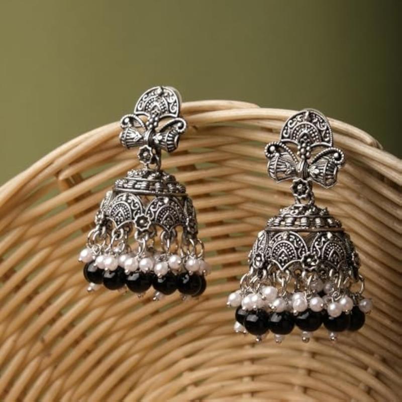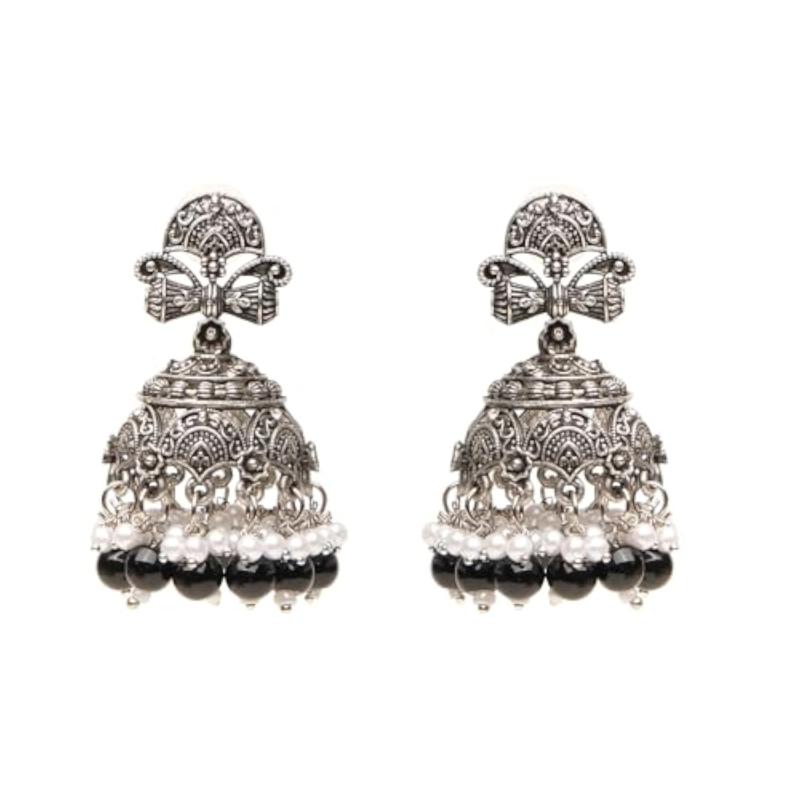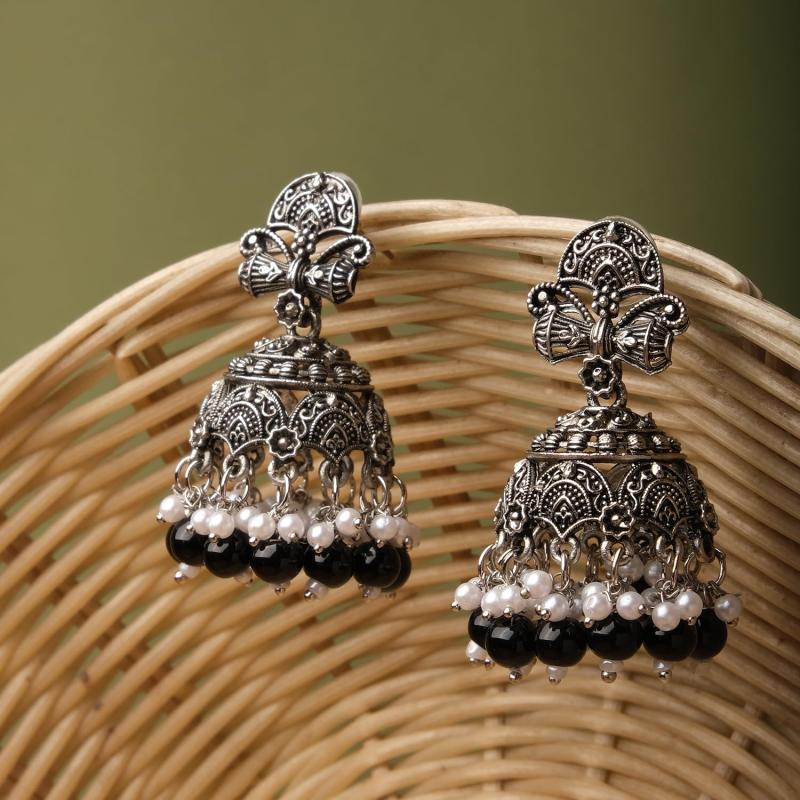Lightweight and versatile jhumka earrings suitable for daily wear, parties, or office use. The oxidized finish adds a trendy touch to your outfit.