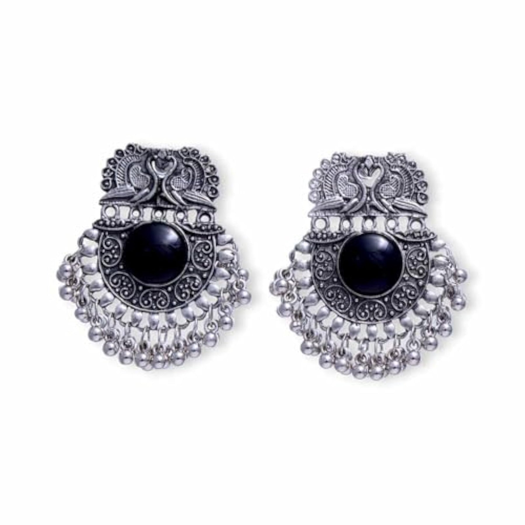 Add a touch of elegance to your look with these plated oxidised obsidian tassel beads earrings. These dainty oxidized stud earrings are perfect for any occasion.