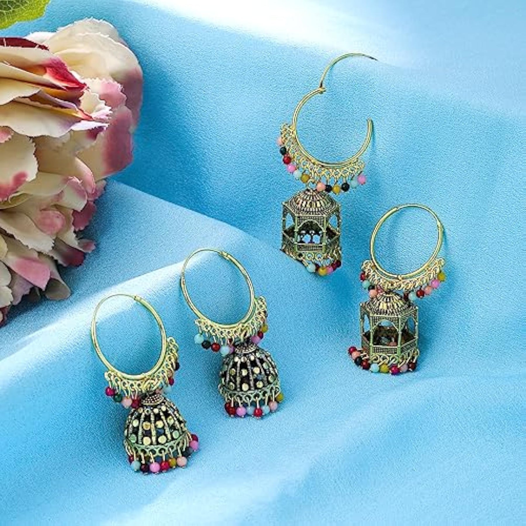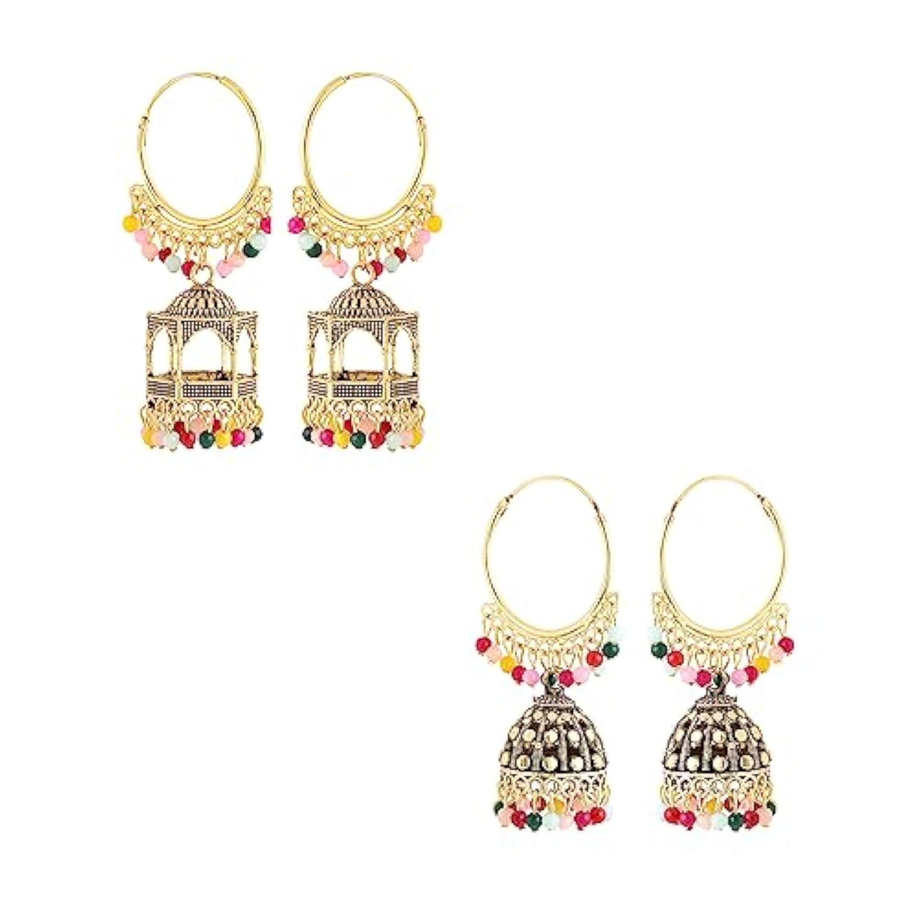 Elegant and traditional earrings set including hoop and jhumka designs. Perfect for birthday and anniversary gifts for wife.