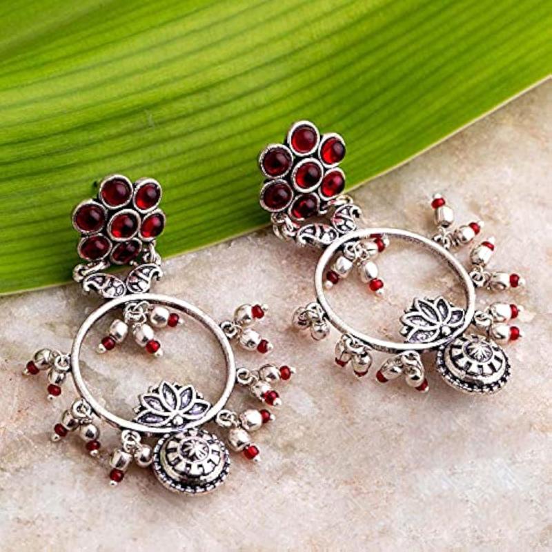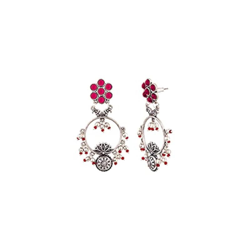Add a touch of elegance to your look with these stunning hoop earrings featuring a pink stone accent. Perfect for any occasion.