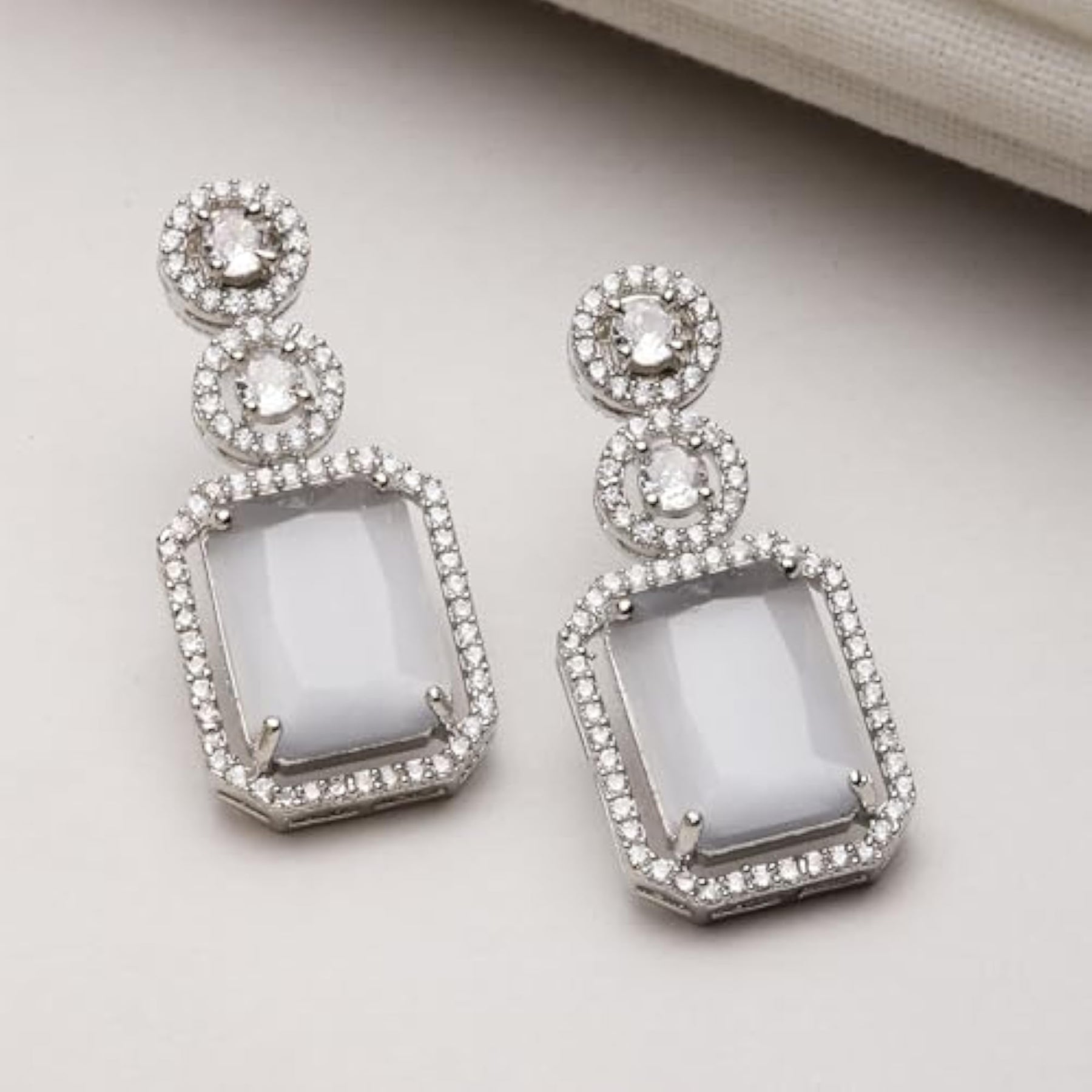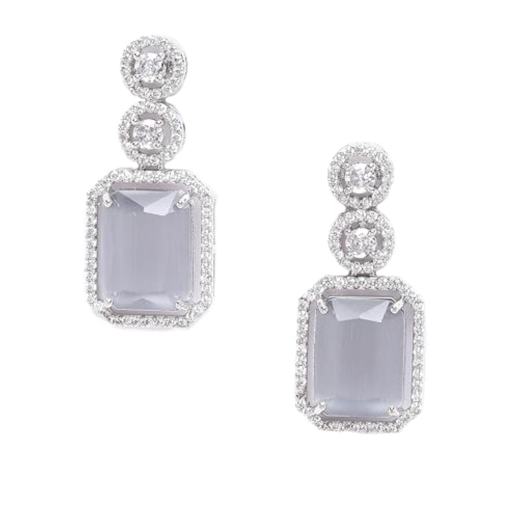 Elegant earrings made of oxidised silver-plated metal with sparkling American Diamonds in oval shape.