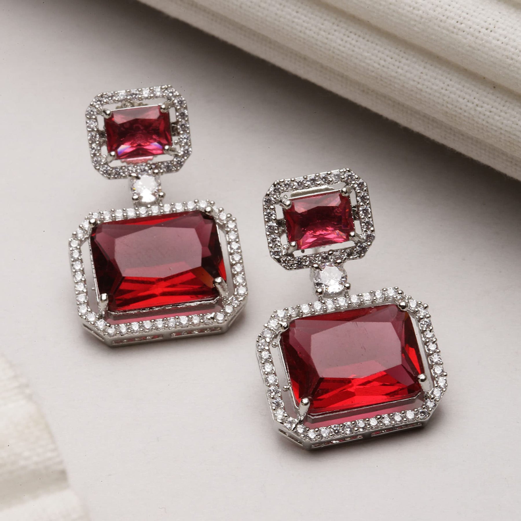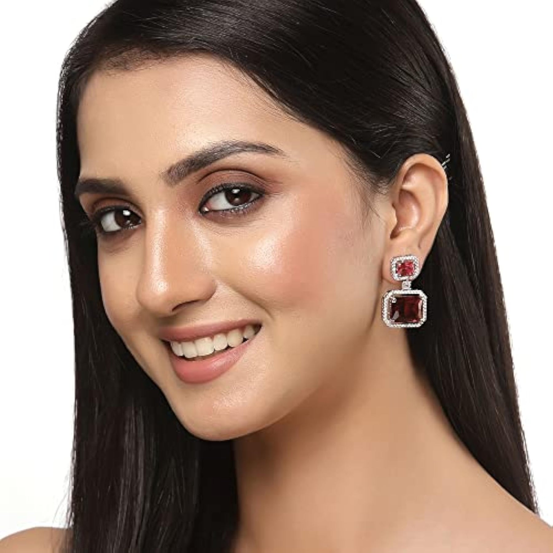 Elegant oval-shaped drop earrings with American Diamond studding, perfect for adding a touch of sparkle to your outfit.