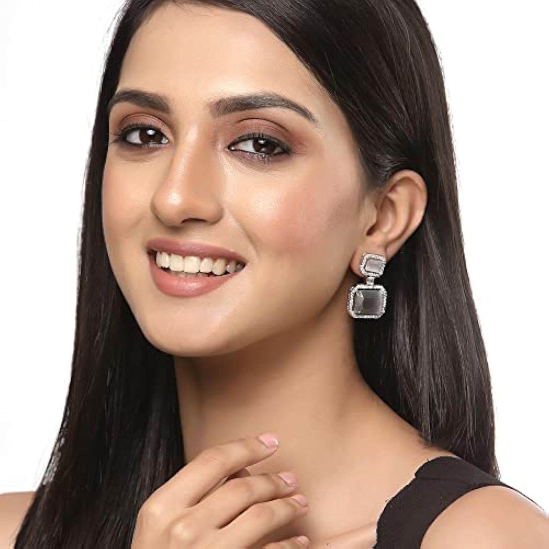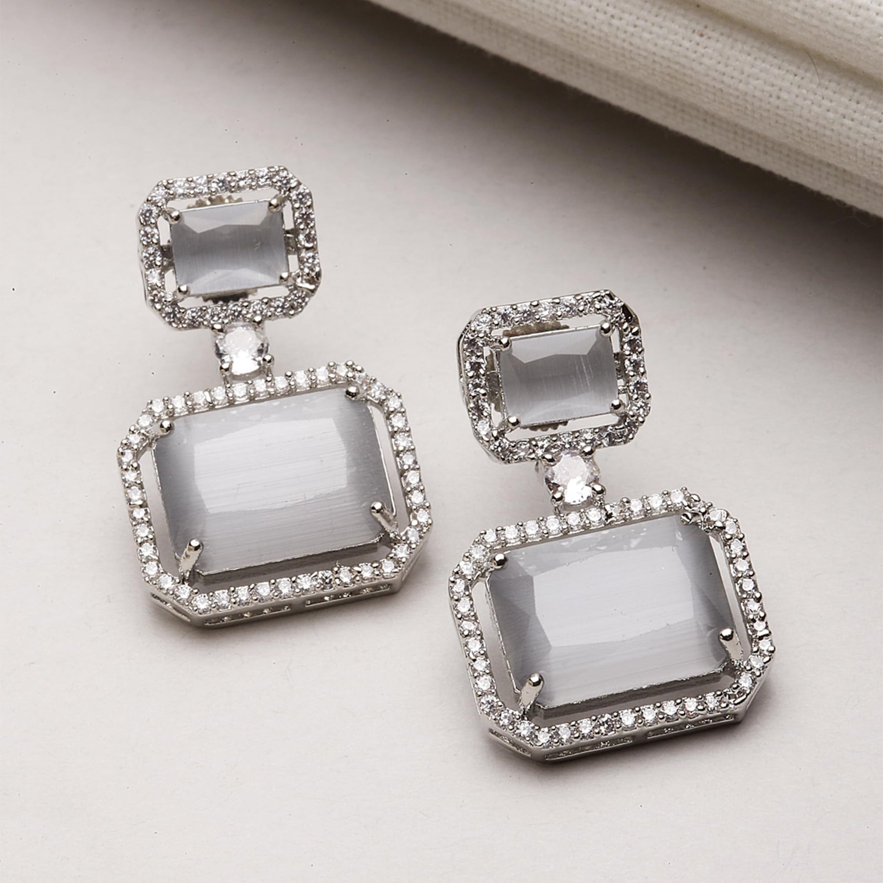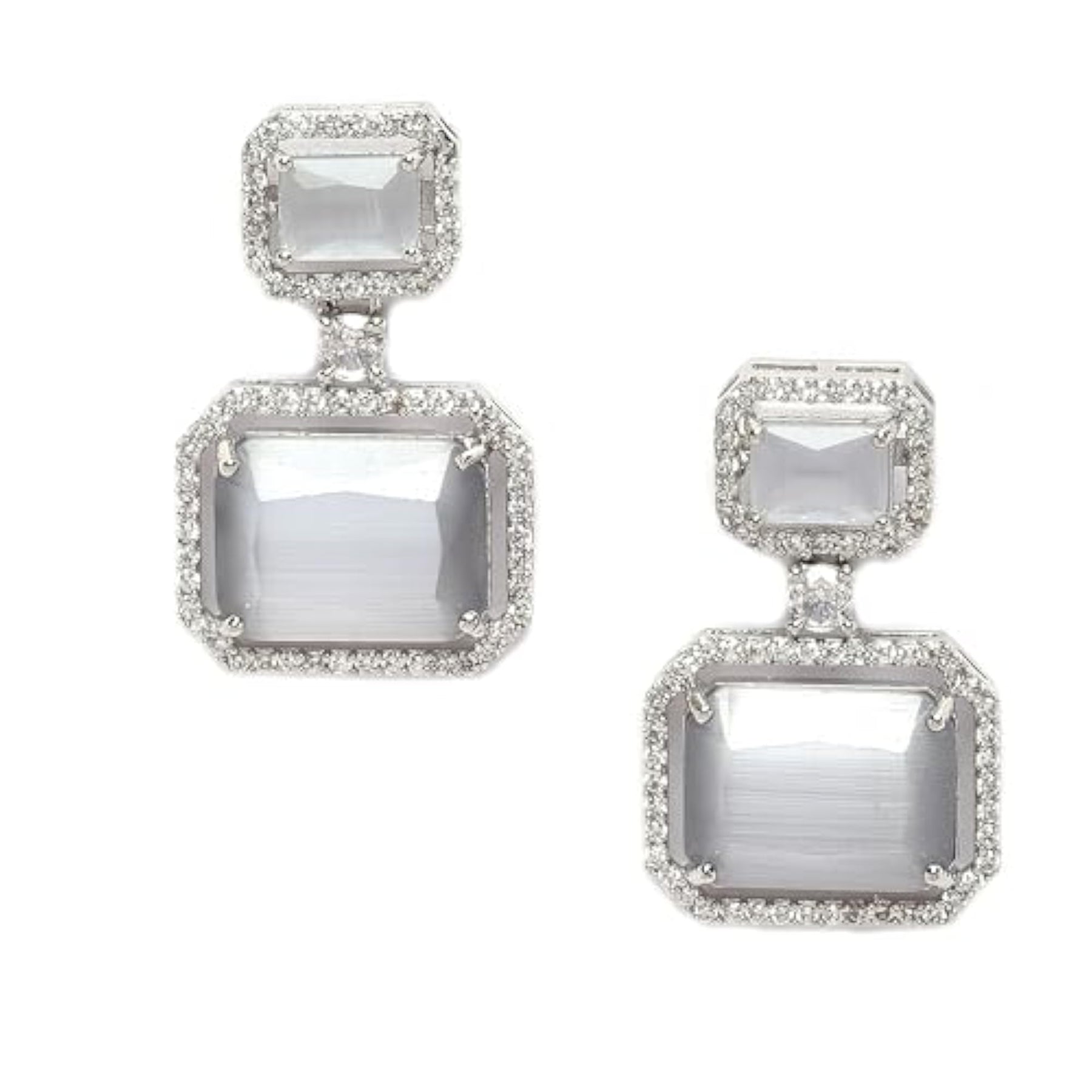 Elegant earrings crafted with oxidised silver plating, adorned with sparkling American Diamonds.