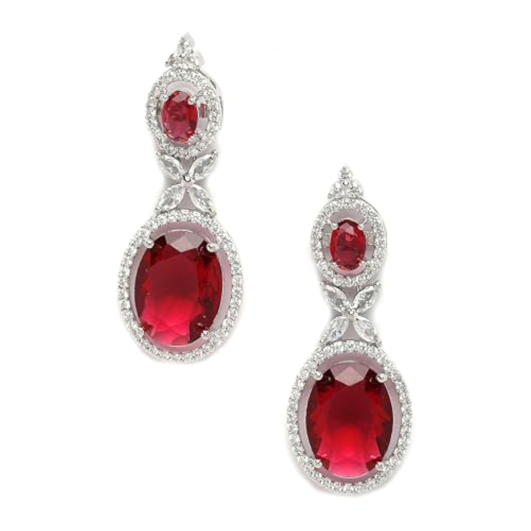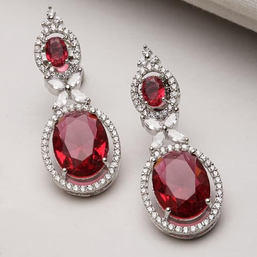 Elegant and stylish drop earrings featuring oxidised silver plating and sparkling American diamond studs.