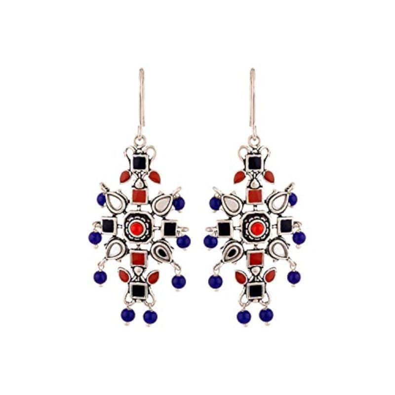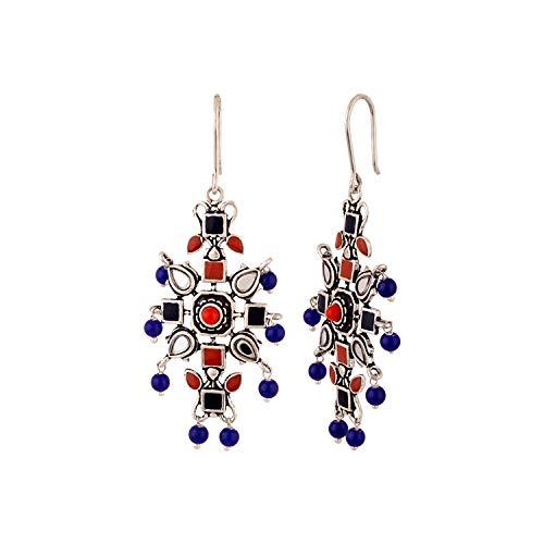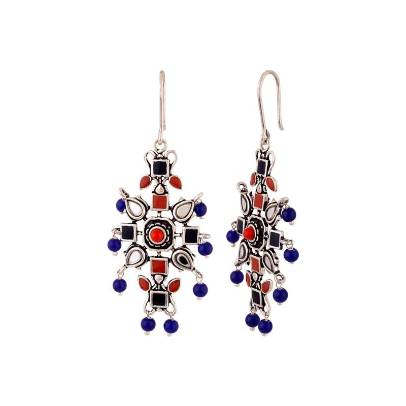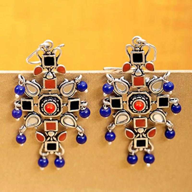 Beautiful tribal jewelry inspired earrings featuring red pearl beads, perfect for adding a touch of boho chic to your outfit.