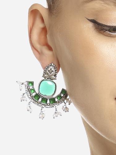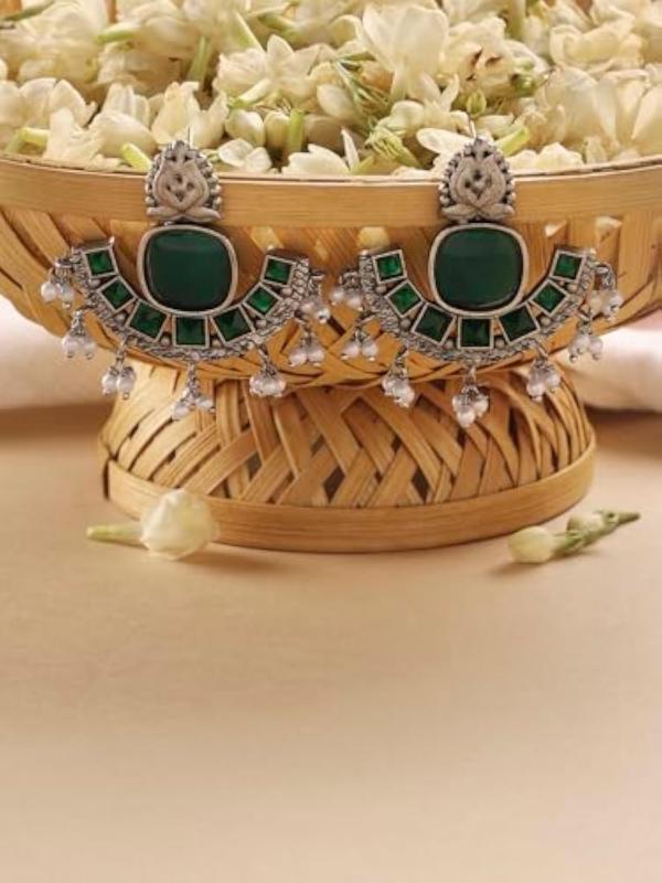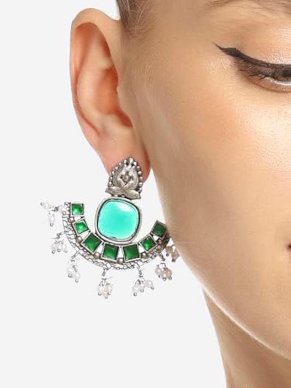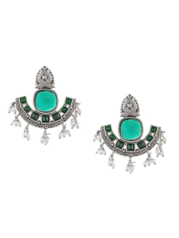 Elegant silver oxidised drops earring with stunning stones and beads design, perfect for traditional occasions.