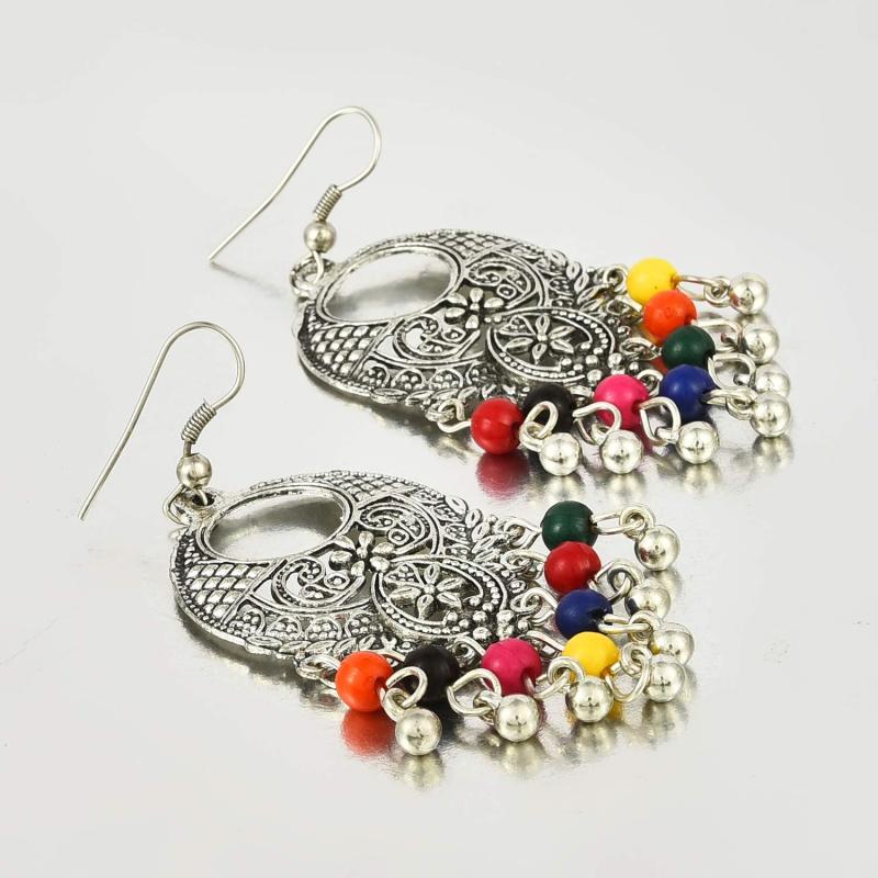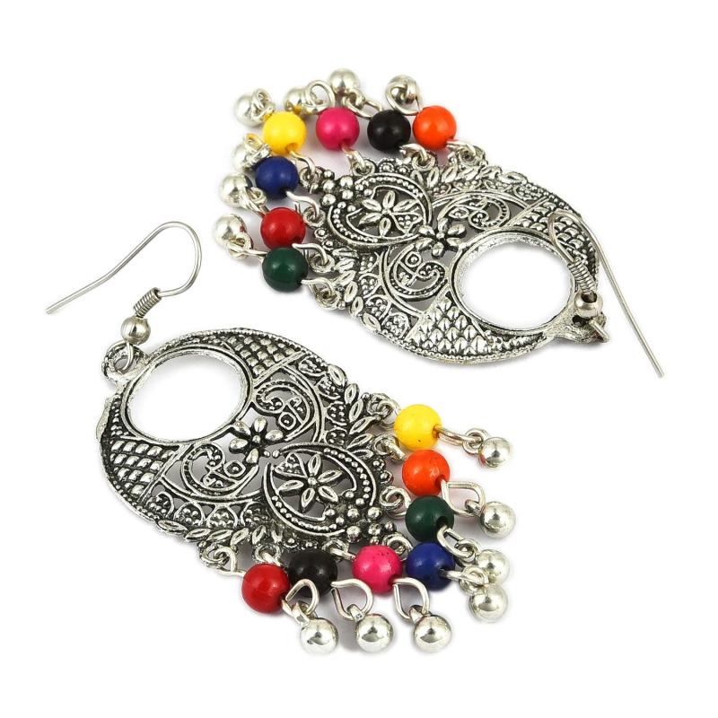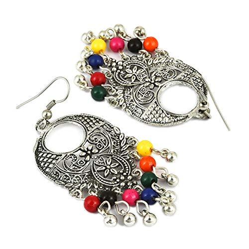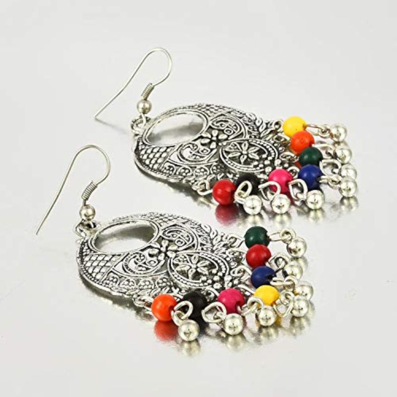Enhance your ethnic look with this combo of 2 pairs of oxidized silver earrings featuring a chandbali and jhumka design.