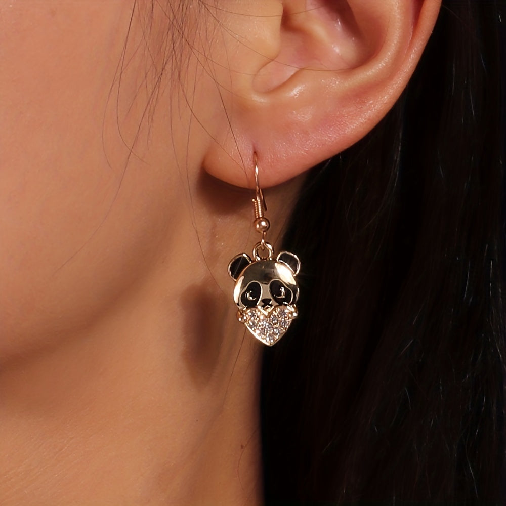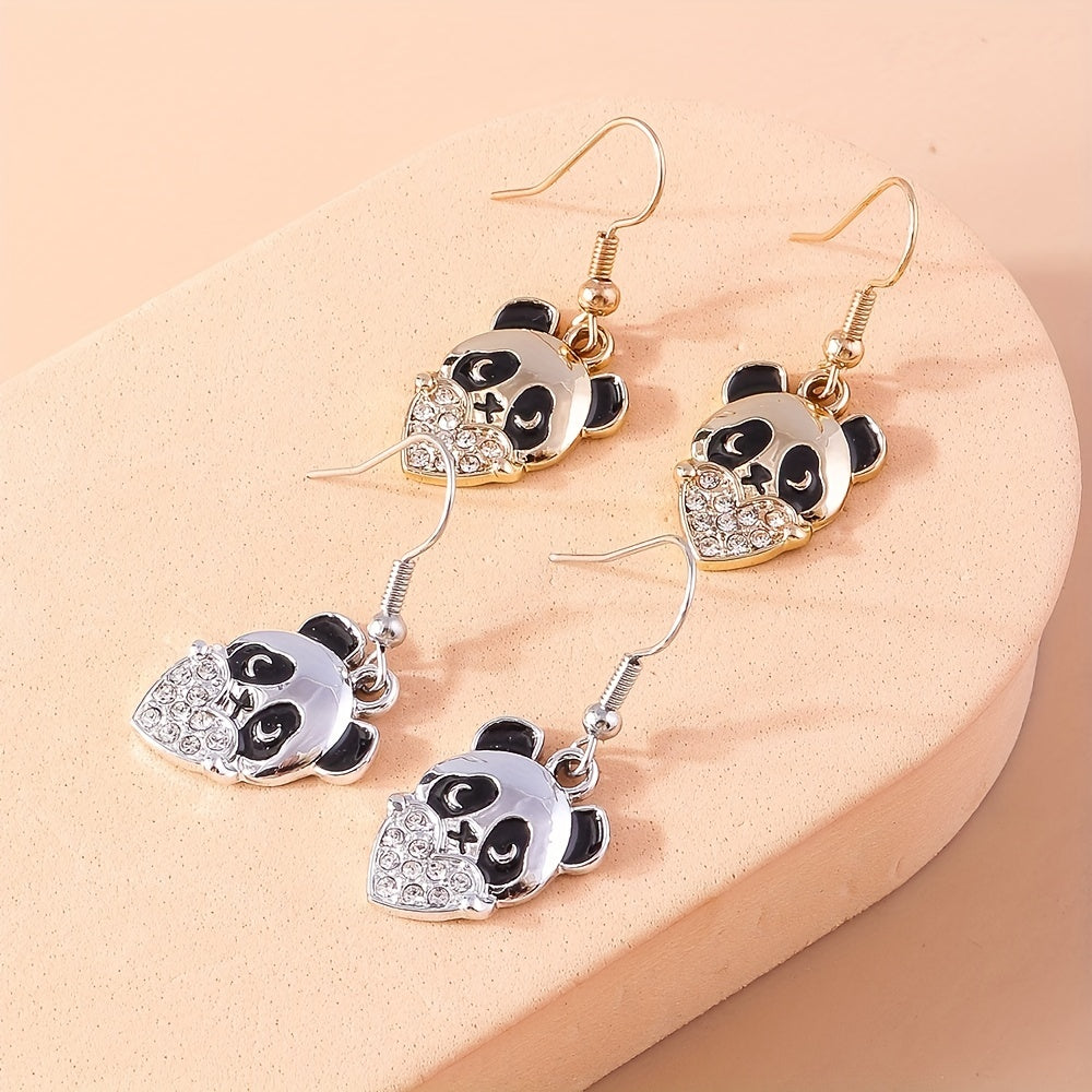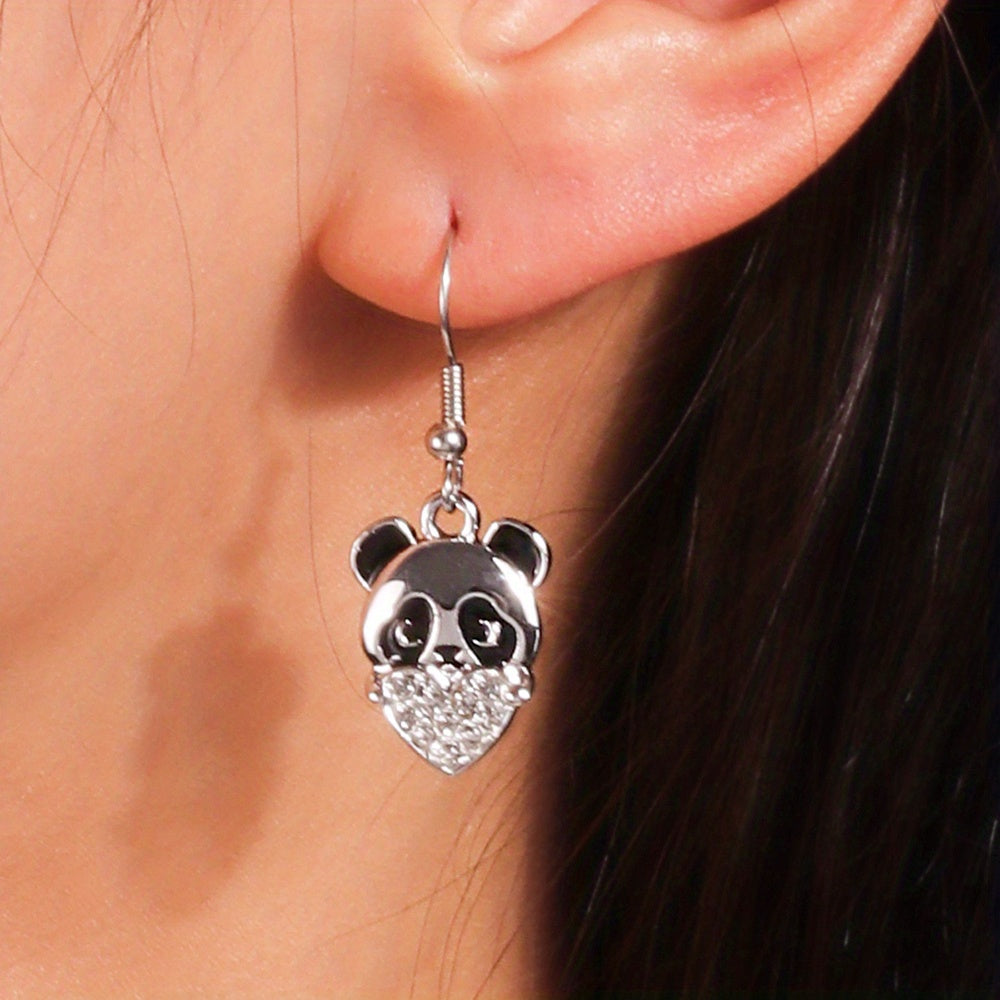 Add a touch of sparkle to your daily wear with these adorable panda dangle earrings featuring sparkling rhinestone decor. Made from high-quality zinc alloy, these earrings are perfect for any occasion.