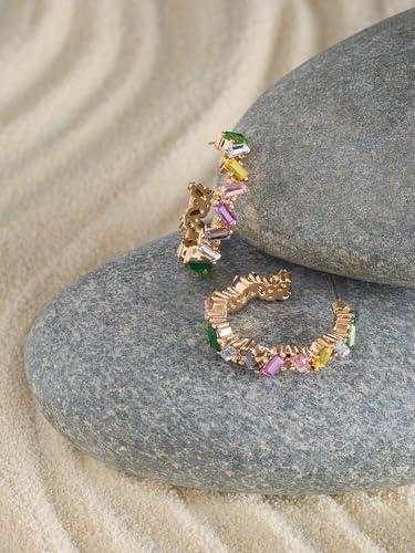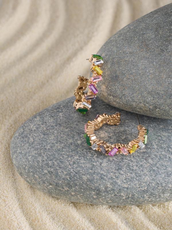Adorn yourself with these dazzling stones embellished semi hoops earrings, perfect for parties and special occasions.