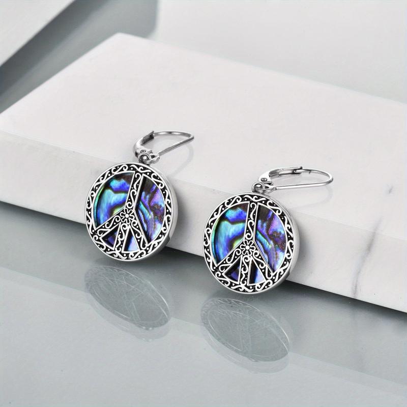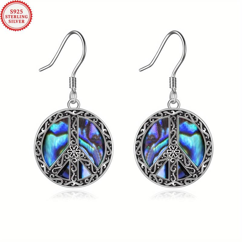 These stylish earrings feature a peace sign hippie design with synthetic abalone filigree flower accents. Made of sterling silver, these dangle earrings are perfect for adding a boho touch to your outfit.