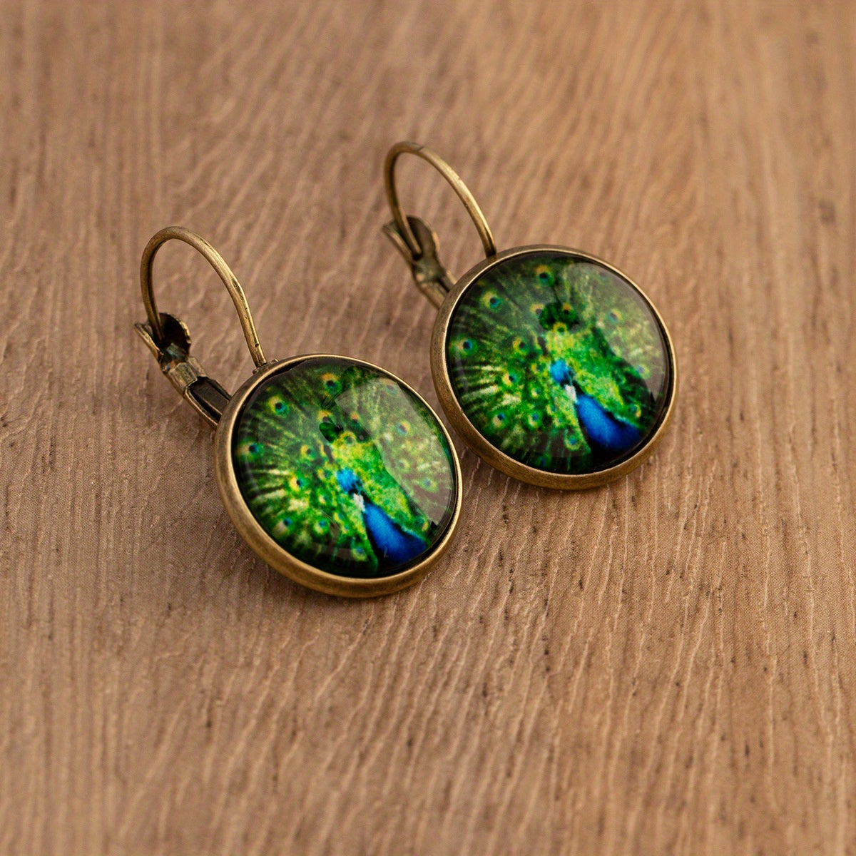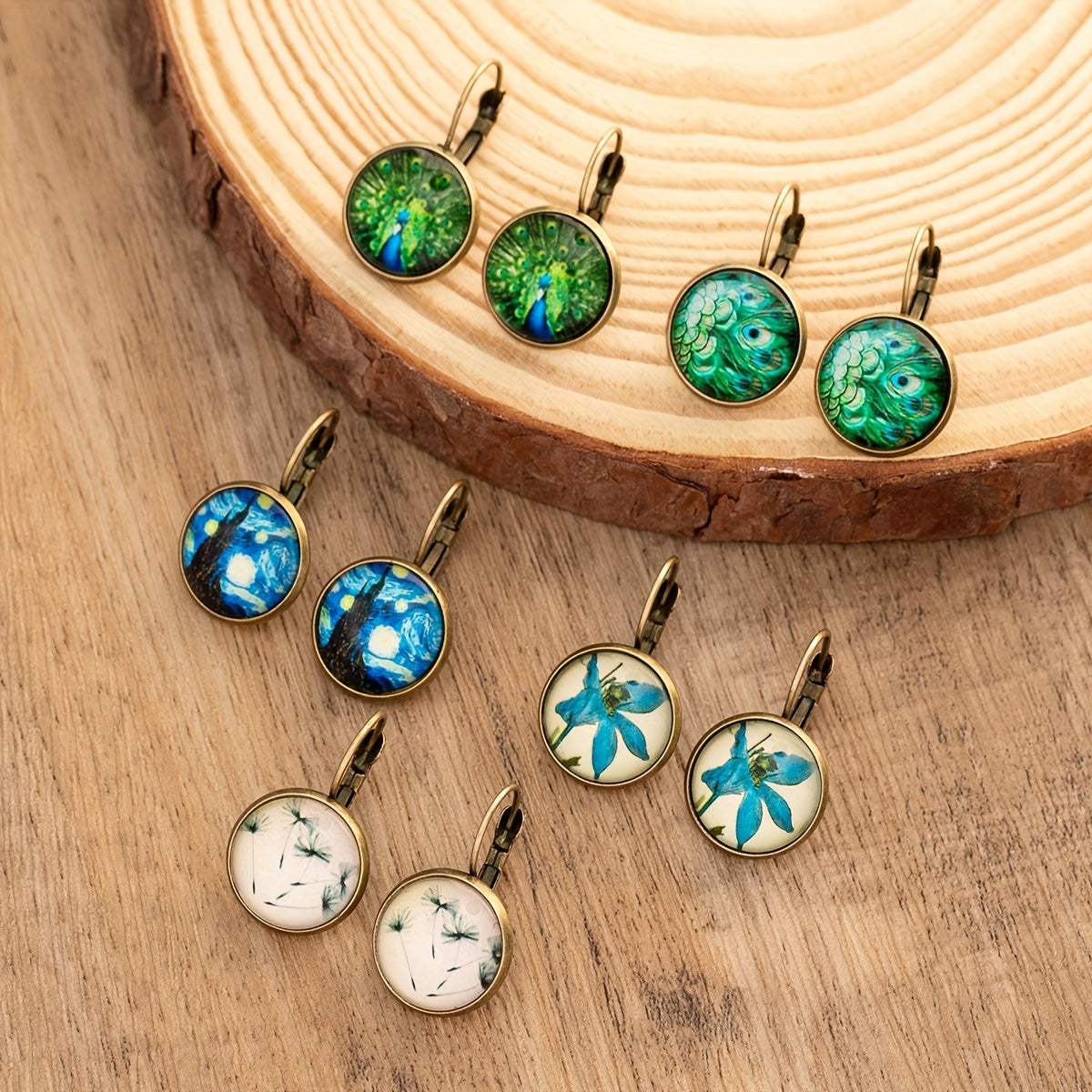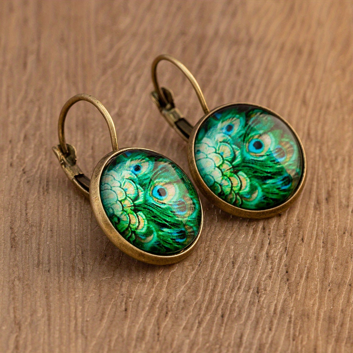 Hand-painted peacock feather and dandelion pattern on copper earrings. Perfect gift for women and girls.