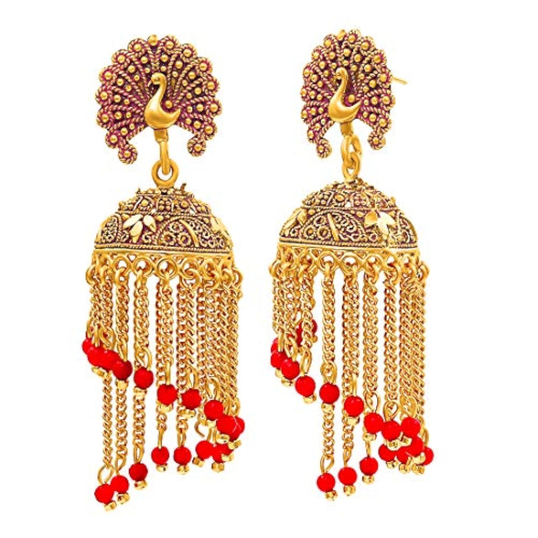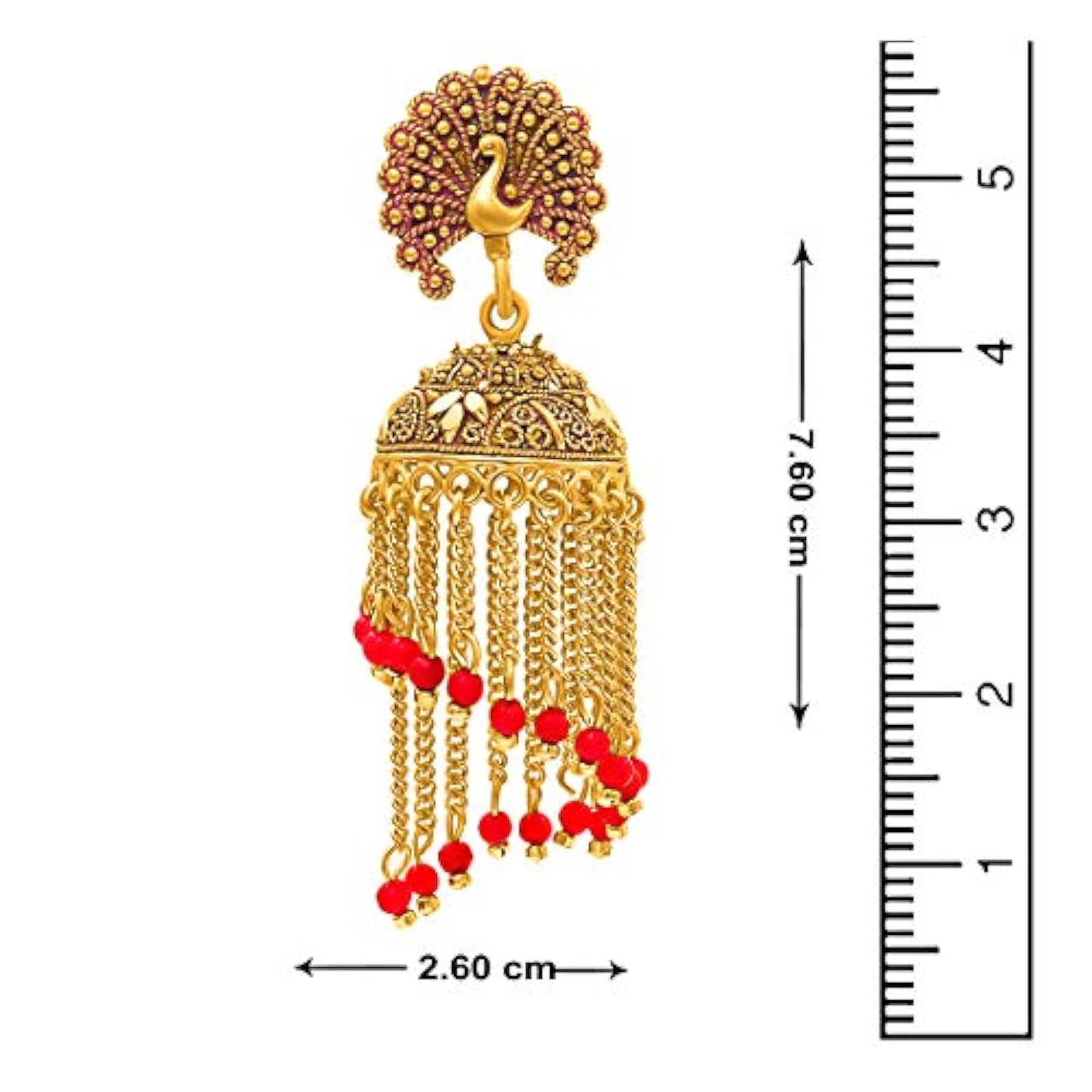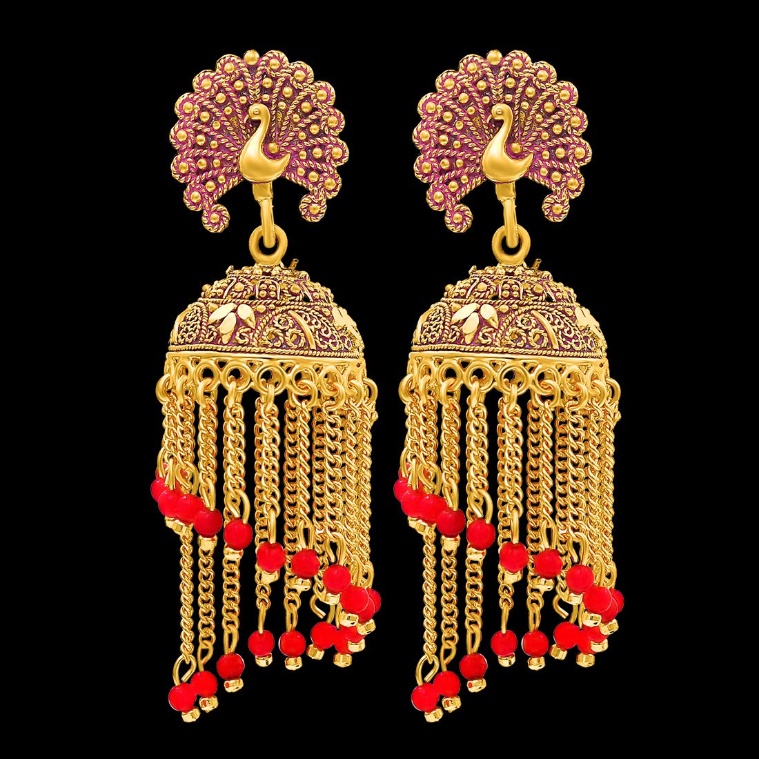 Beautiful peacock shaped jhumka earrings with stunning moti kundan stones and meenakari work. Perfect for adding a touch of traditional elegance to your outfit.
