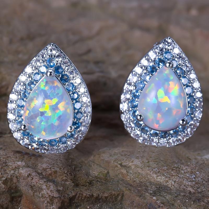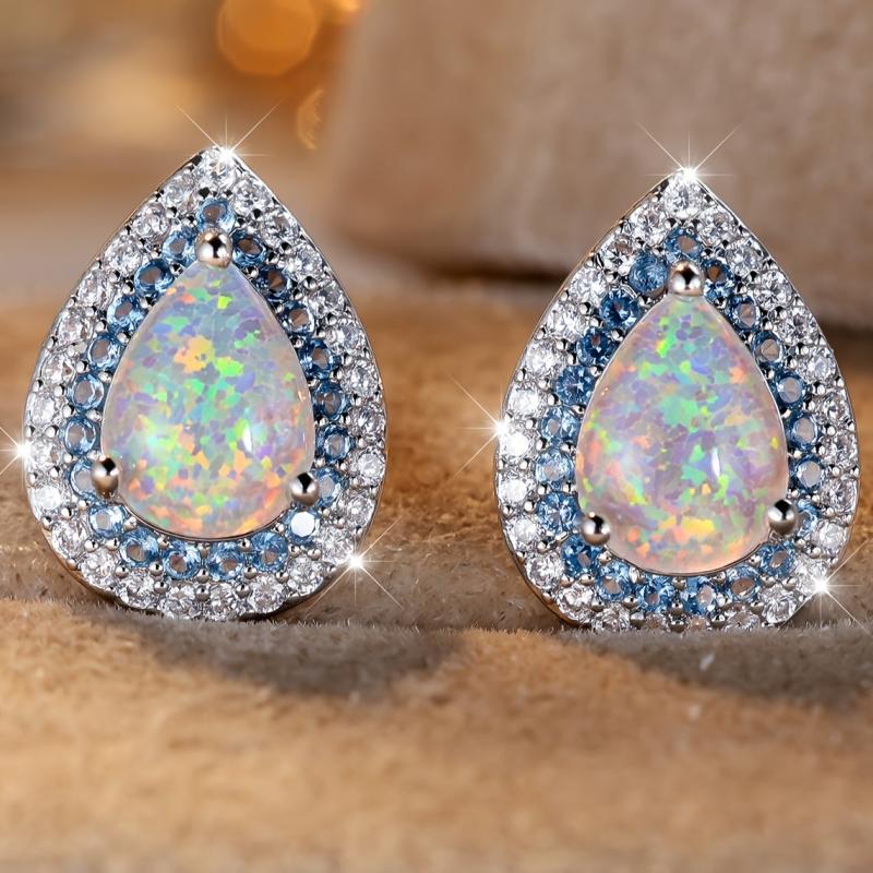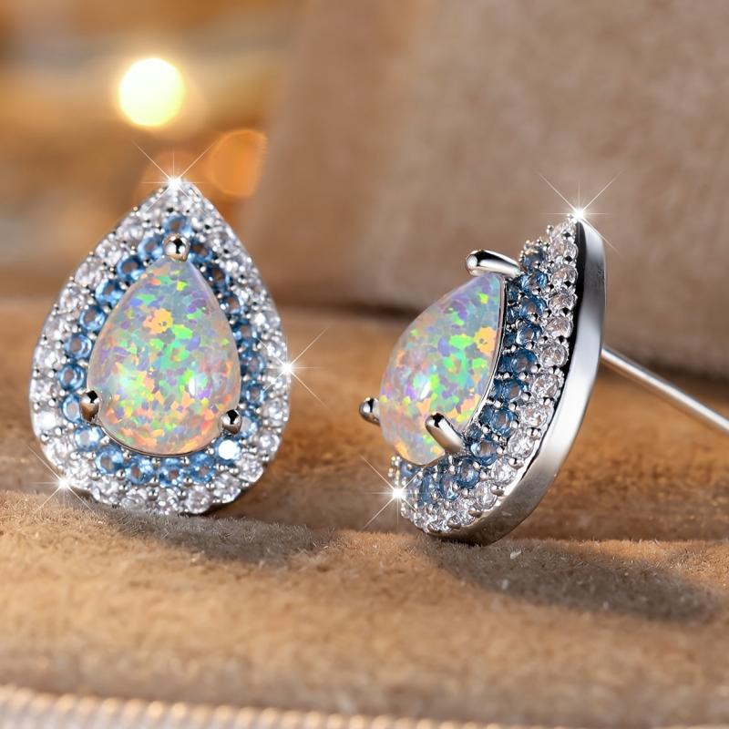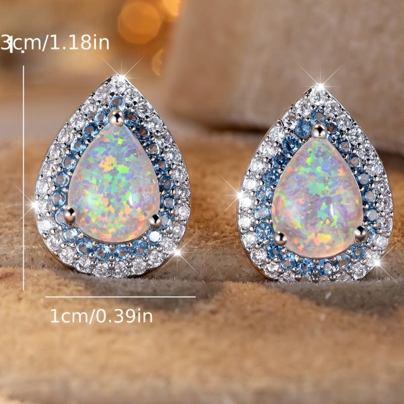These synthetic opal earrings are perfect for weddings, parties, holidays, and everyday wear. They are sparkly and durable, adding a touch of elegance to any outfit.