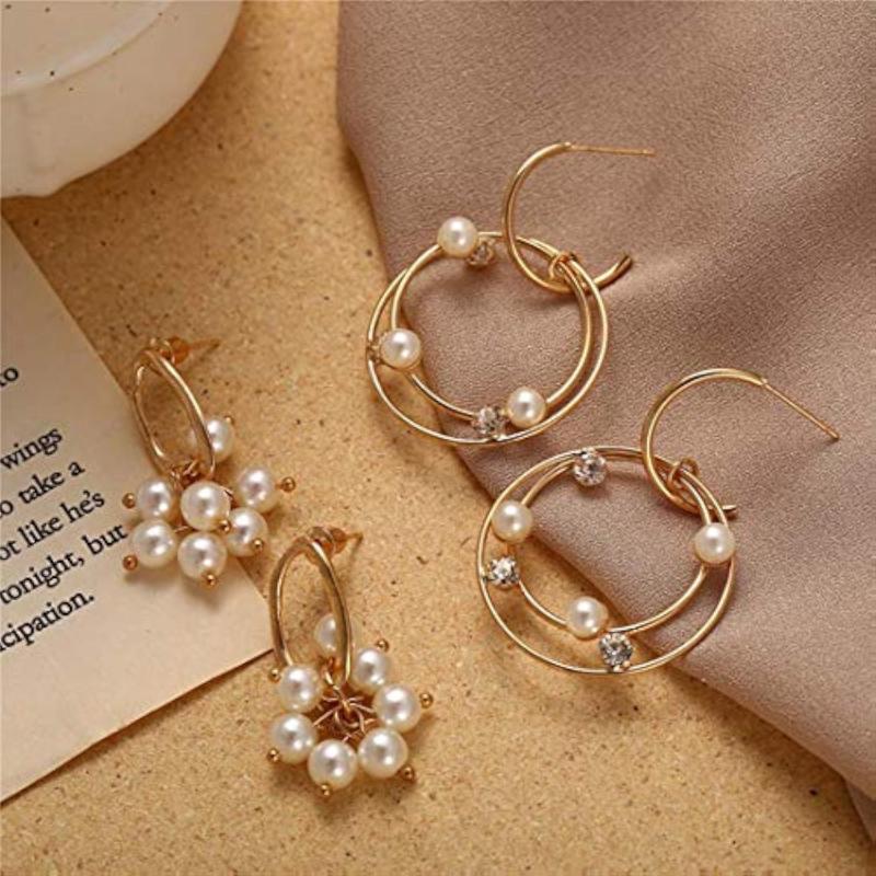 Elegant set of 6 pairs of earrings with stunning pearl and AD designs. Perfect for everyday wear or special occasions.