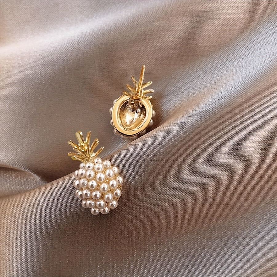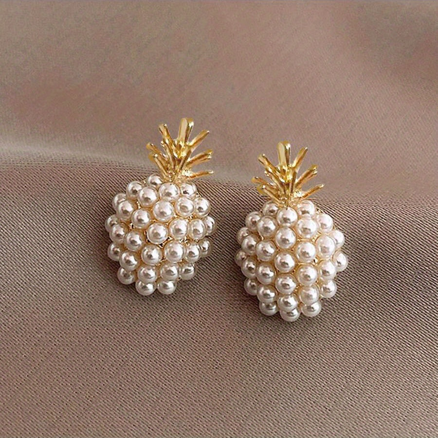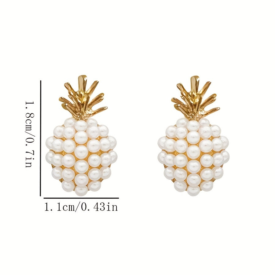 These stylish faux pearl pineapple stud earrings are the perfect accessory to add a touch of fun to your outfit. They make a great gift for women who love unique jewelry pieces.