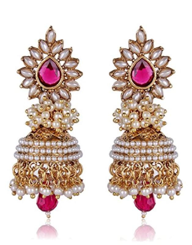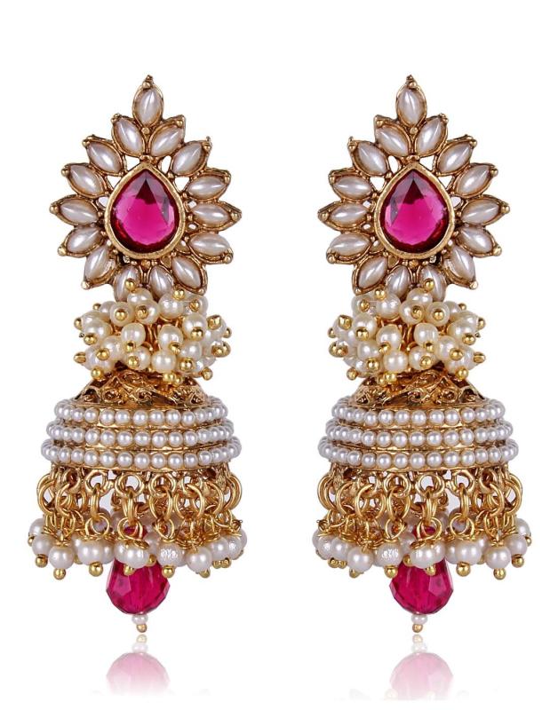 Beautiful jhumki earrings with traditional design and pearl accents.