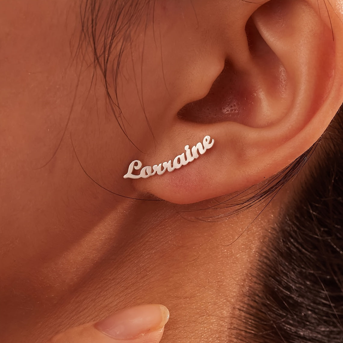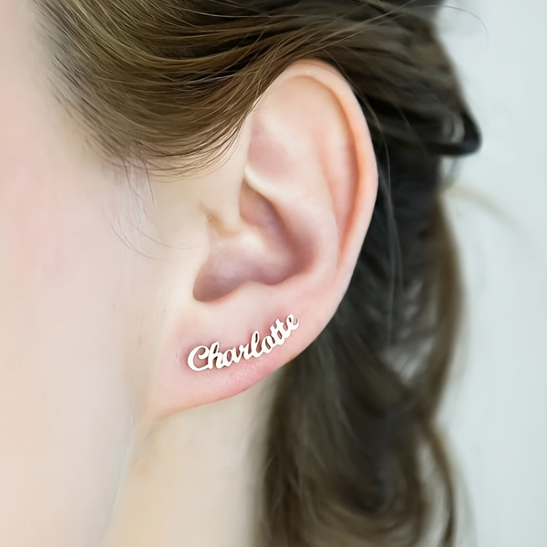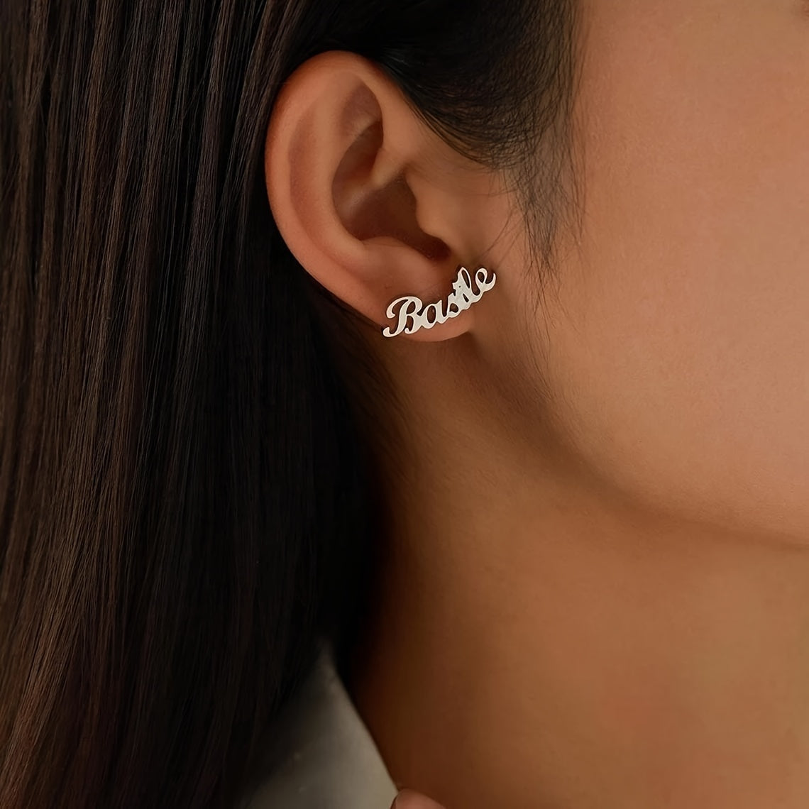These custom name stud earrings are ideal for everyday wear and make a thoughtful gift for birthdays, holidays, and graduations.