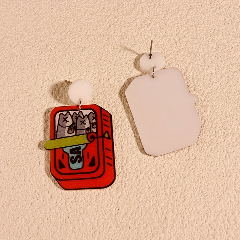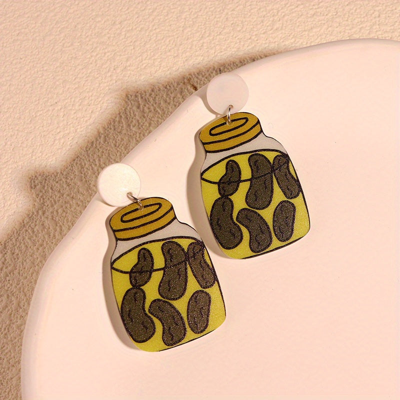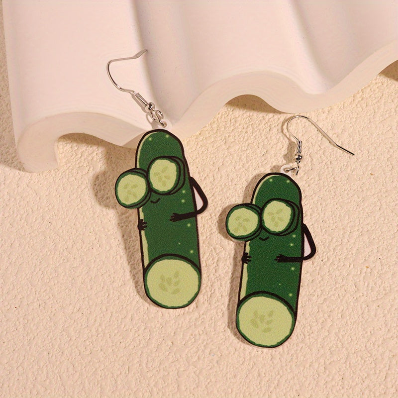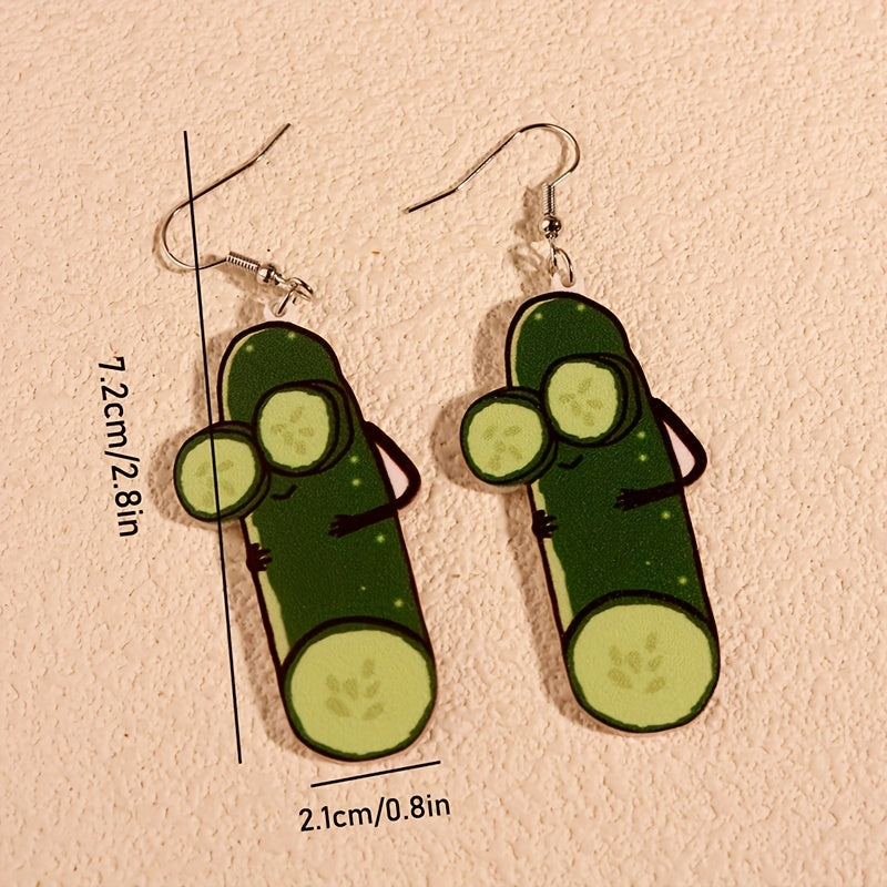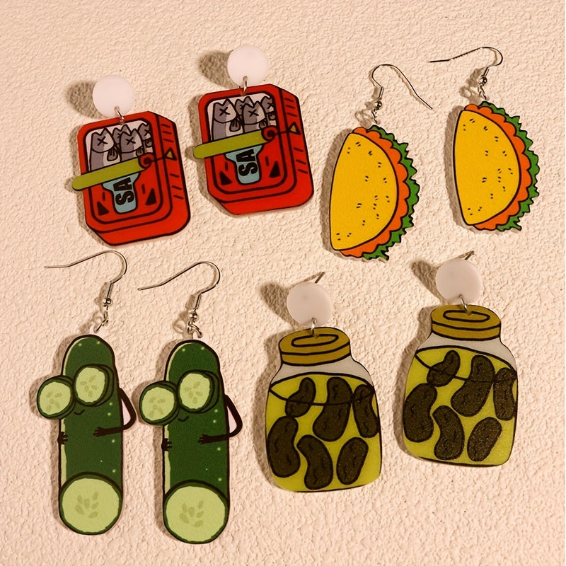Adorable cartoon graffiti dangle earrings featuring pickled cucumber, taco fish design. A fun and unique gift for females.