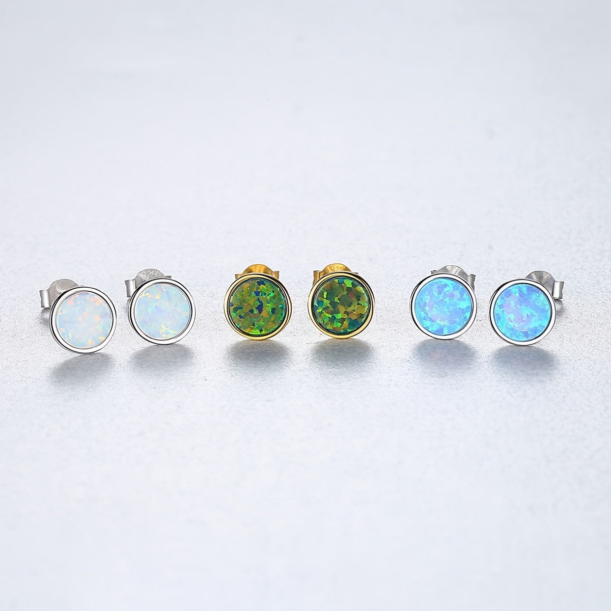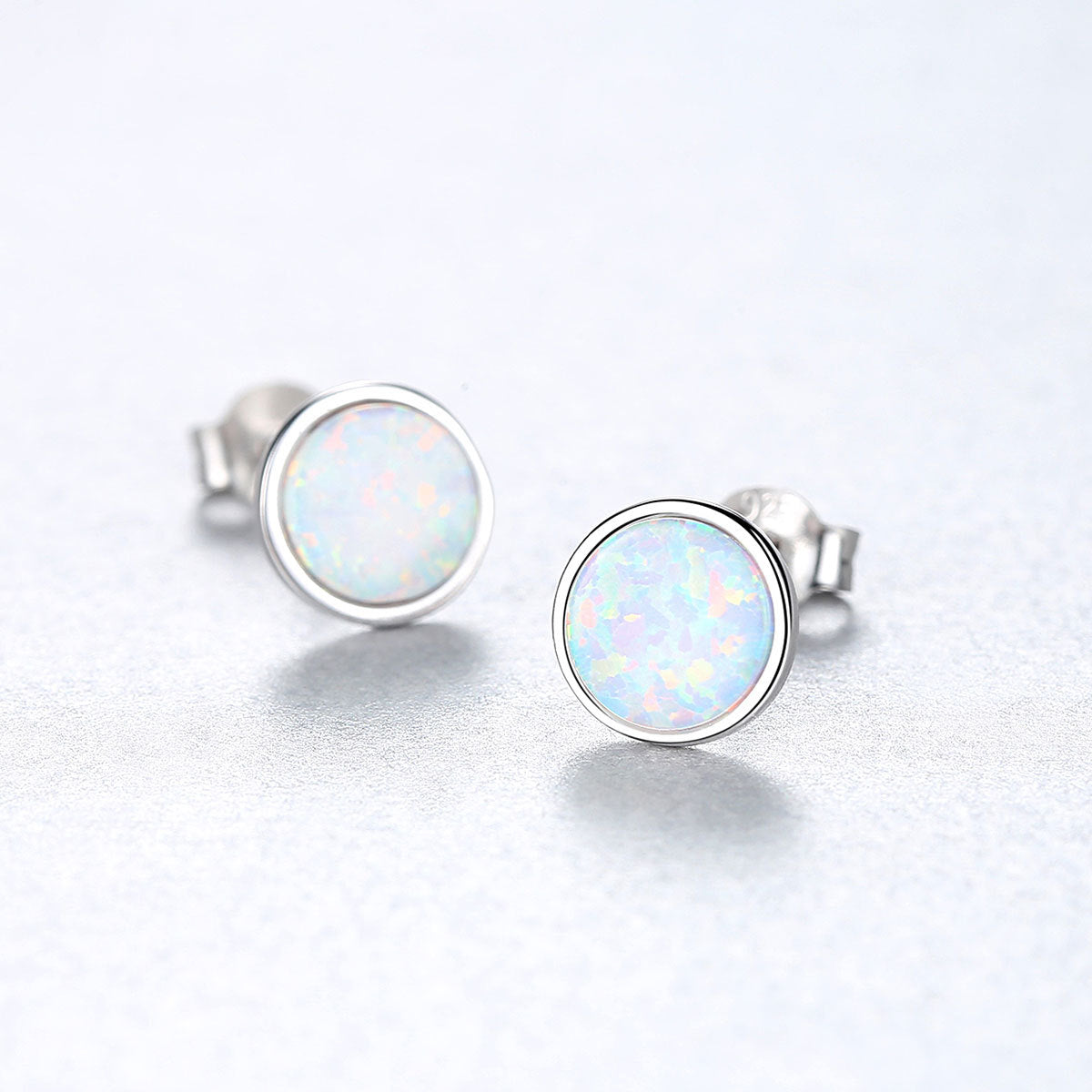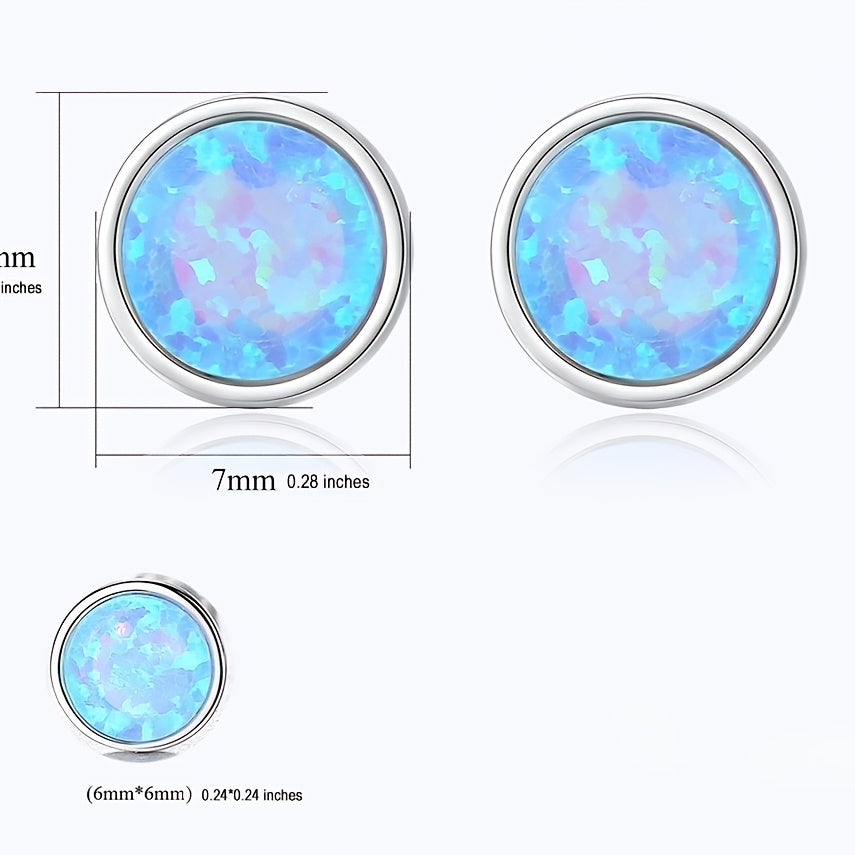 Add a touch of glamour with these stunning 925 sterling silver synthetic opal stud earrings. Perfect for party or music lovers. Show off your style with these elegant and sexy earrings.
