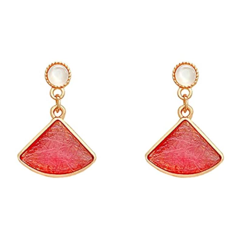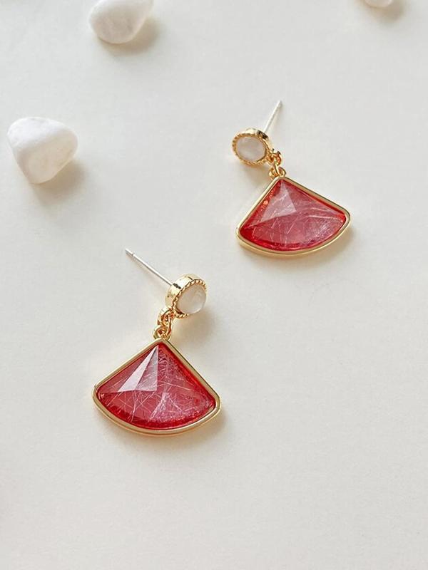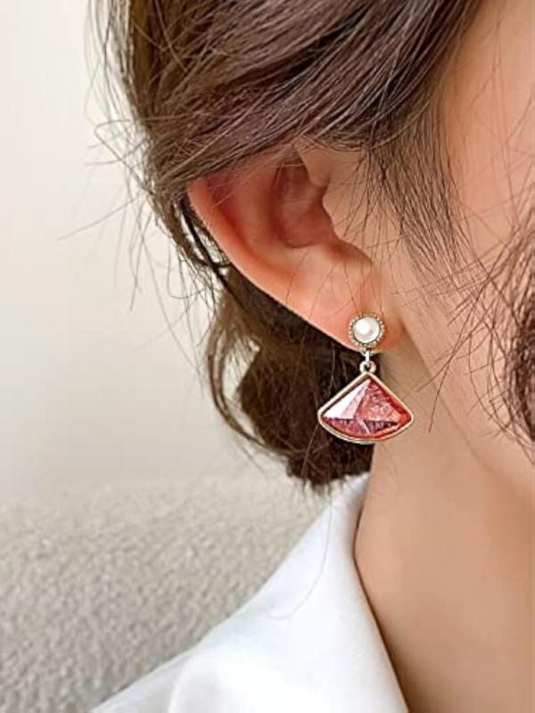 Enhance your look with these stunning pink crystal earrings featuring a triangle shape design. Perfect for adding a touch of elegance to any outfit.