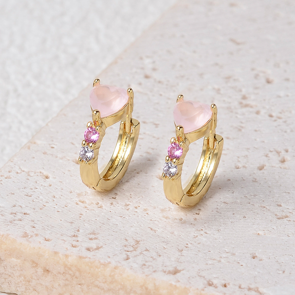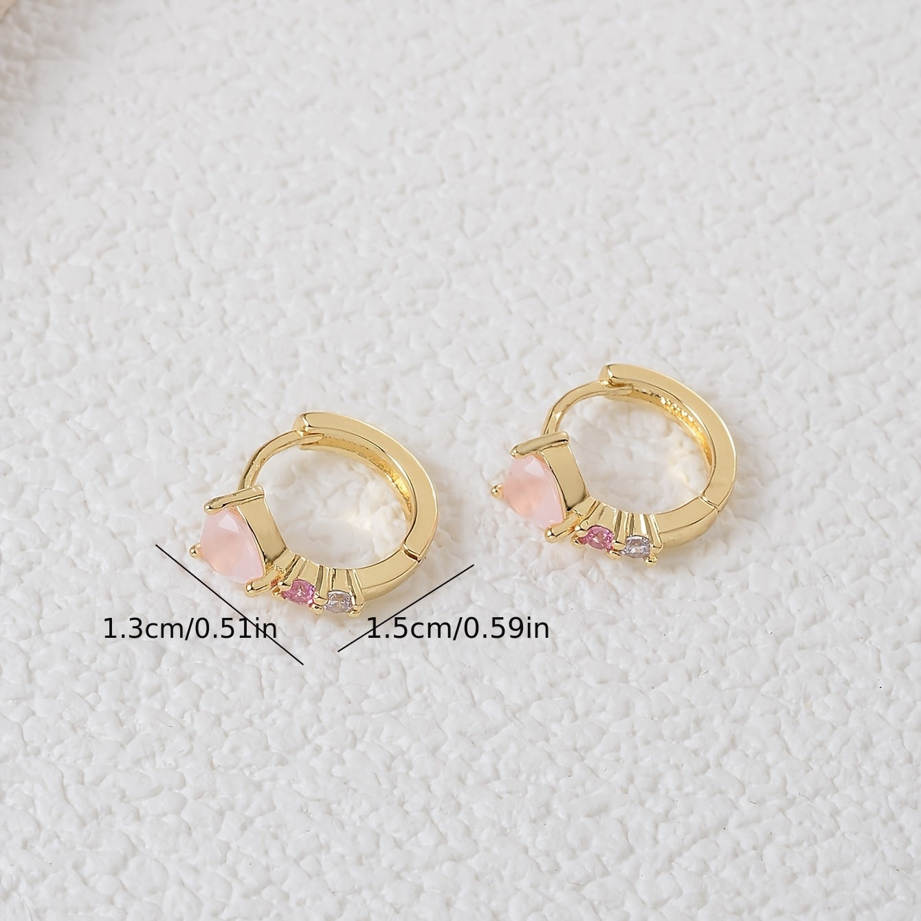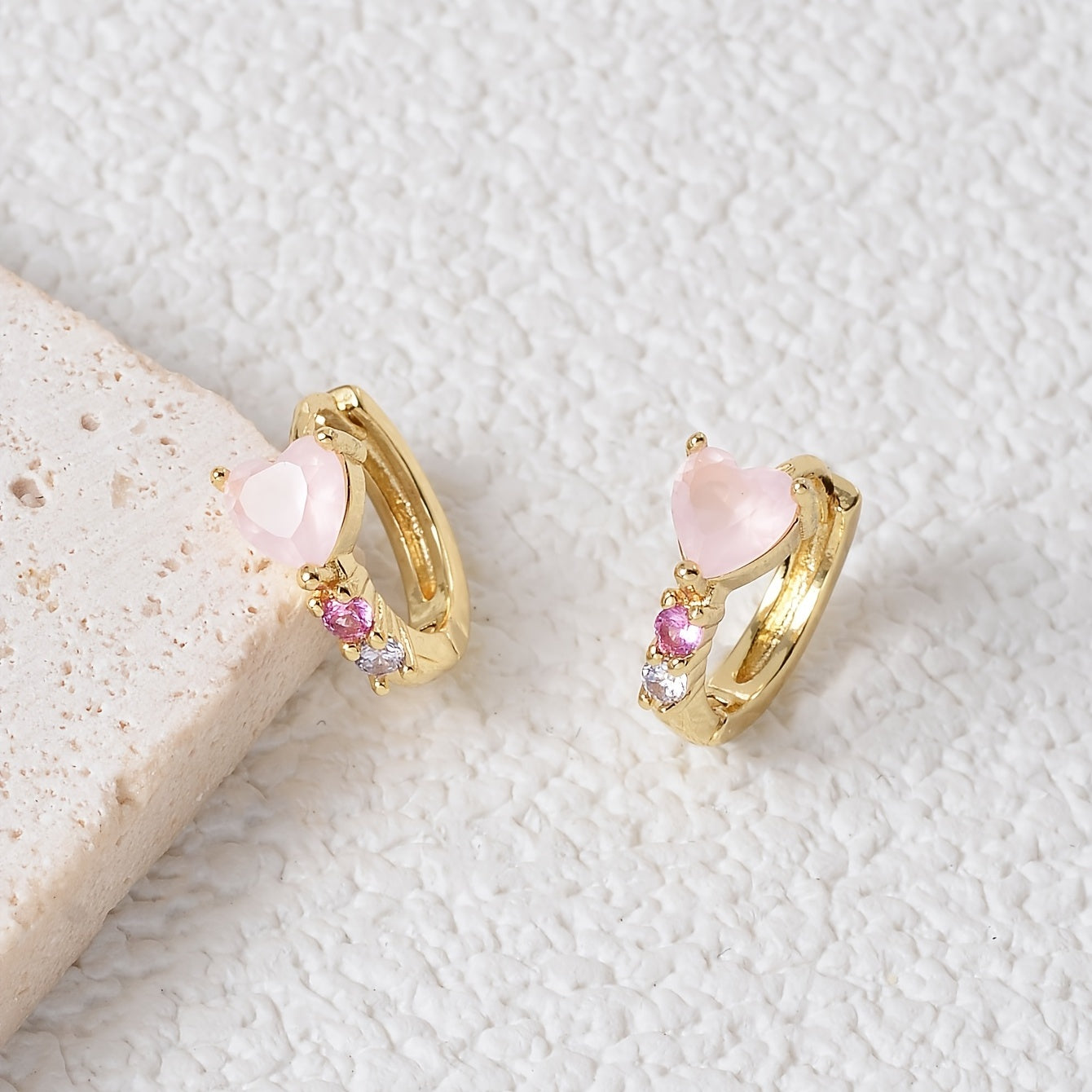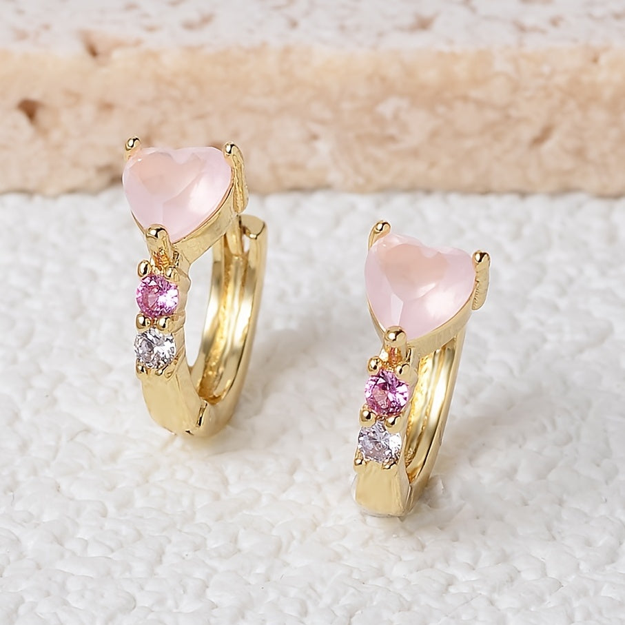 Add a touch of glam with these stunning huggie earrings featuring a heart shape design and multicolor zircon stones. Perfect for women and girls alike.