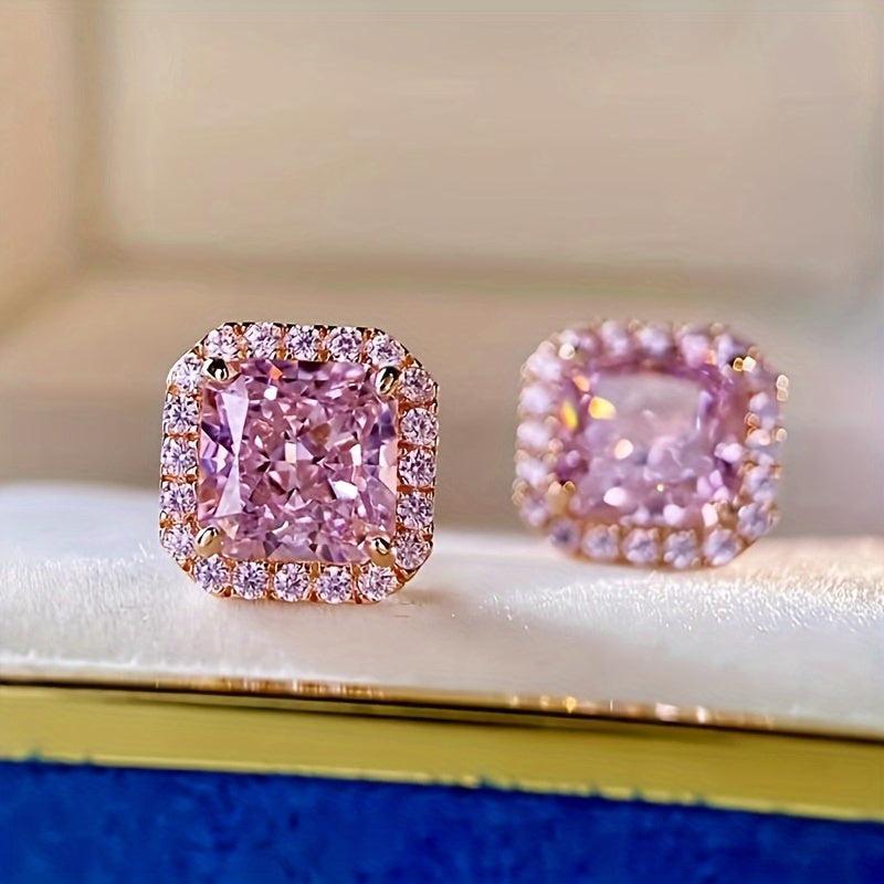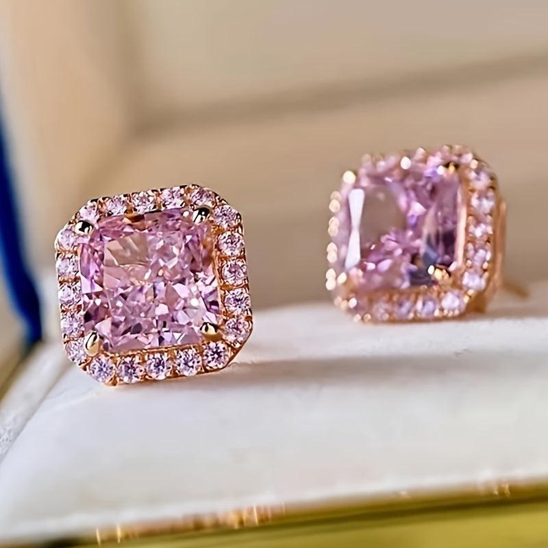 These elegant pink zirconia stud earrings are perfect for weddings, engagements, or daily wear. They add a touch of sparkle to any outfit.