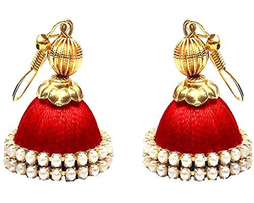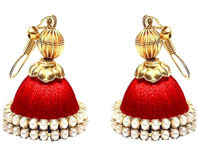 Plastic Base Metal and Pearl Silk Jumki Dori Hoop Earring