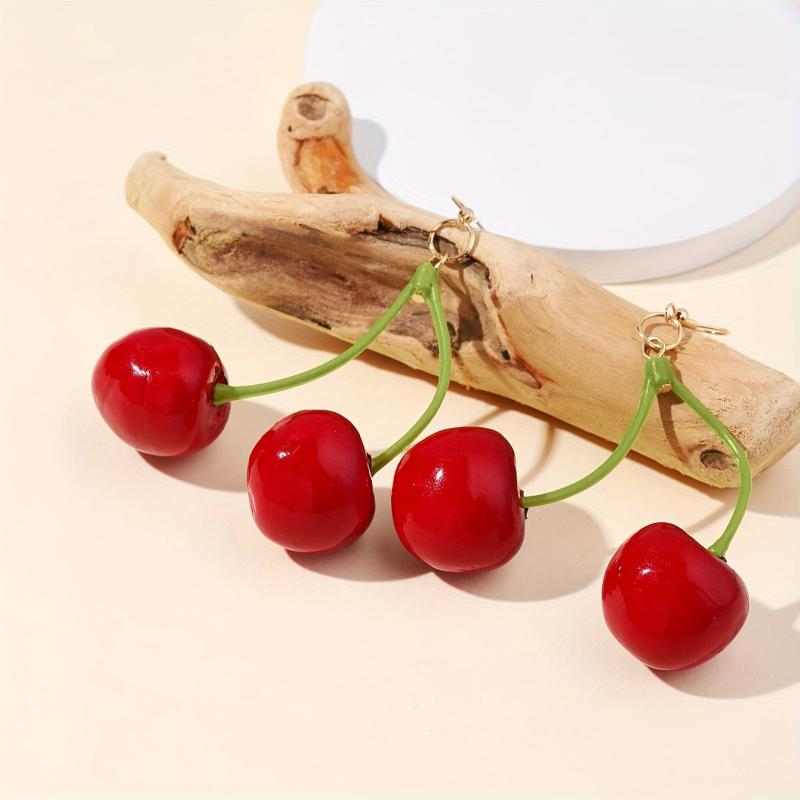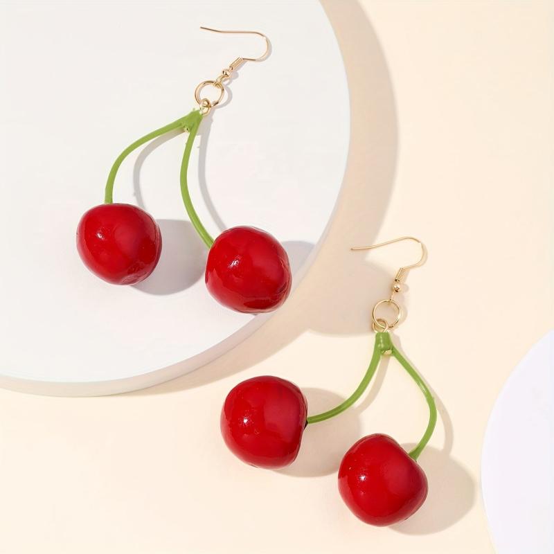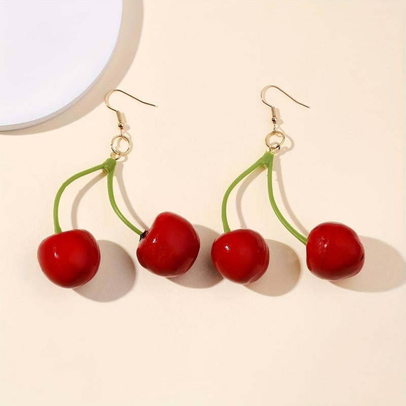 Add a touch of sweetness to your outfit with these plastic cherry sweetheart double cherry earrings in a lovely blush color.