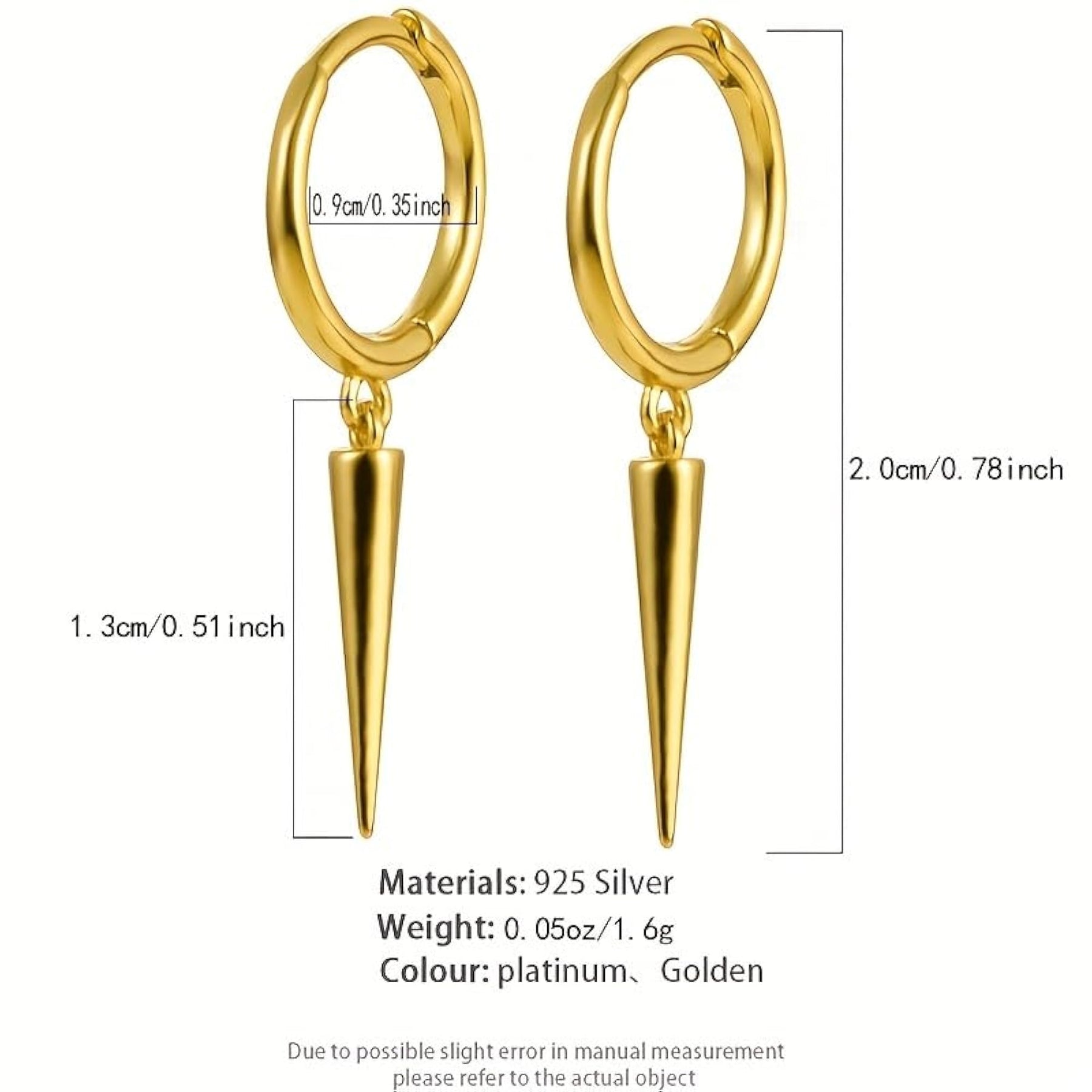 These stylish hoop earrings feature a spike dangle drop design that adds a touch of edginess to your look. Perfect for pairing with pearl earrings or as standalone drop earrings.