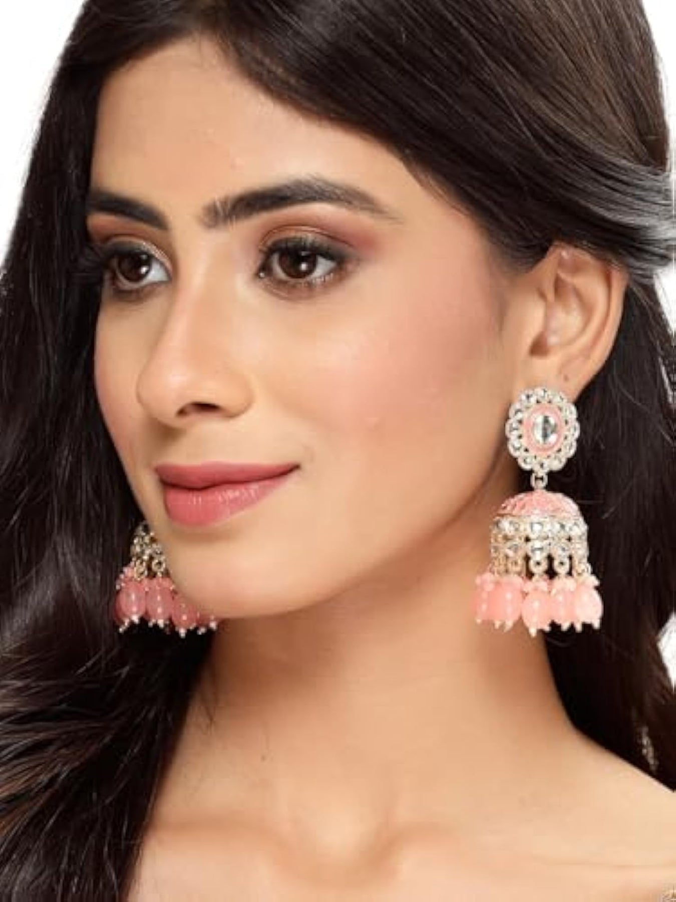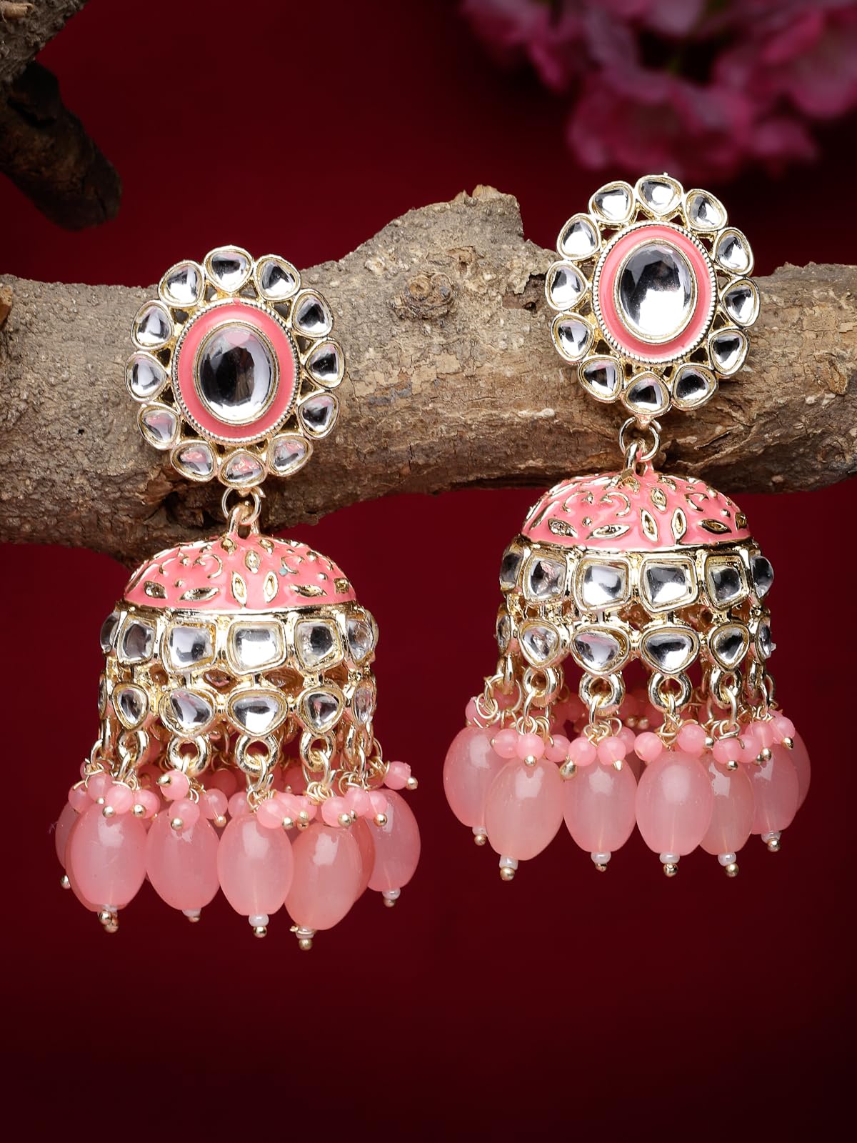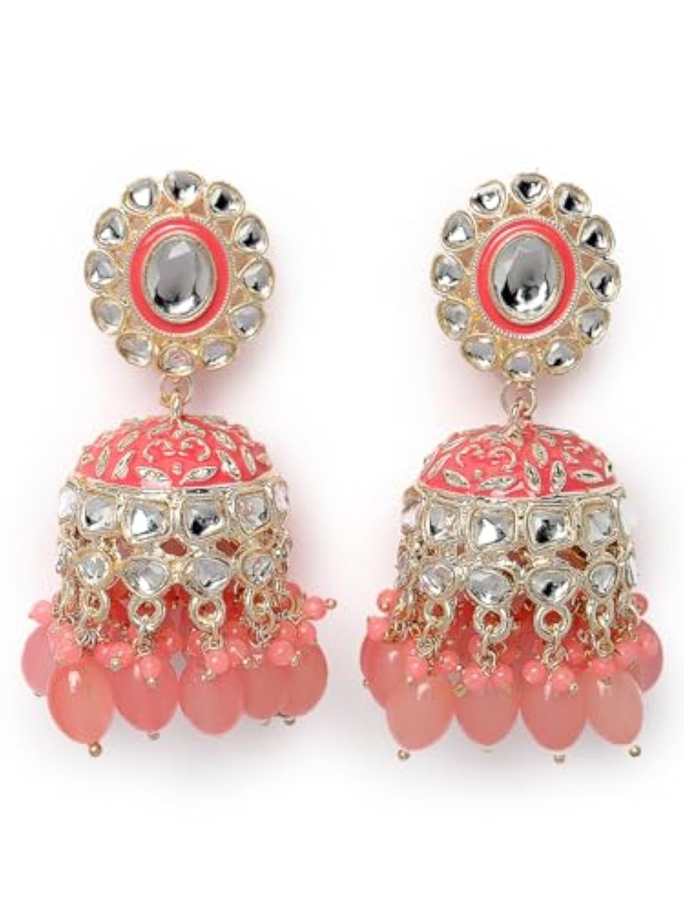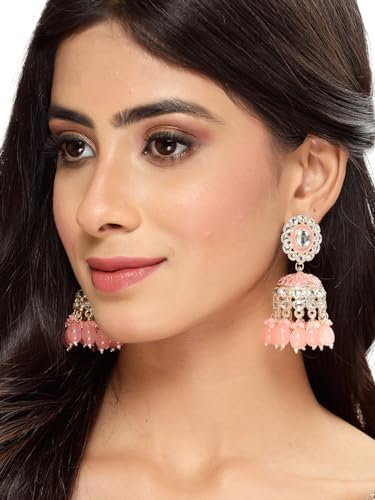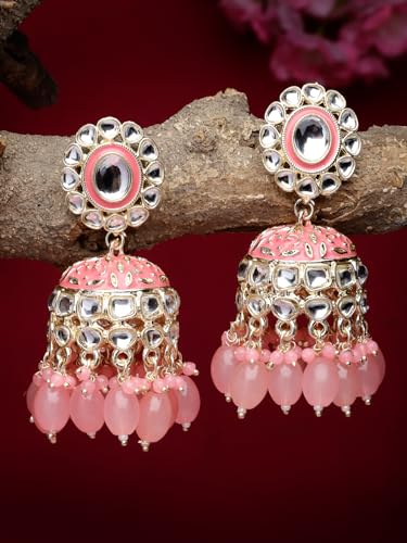 Stunning plated Kundan earrings with intricate Meenakari work. These jhumkas add a touch of traditional elegance to your look.