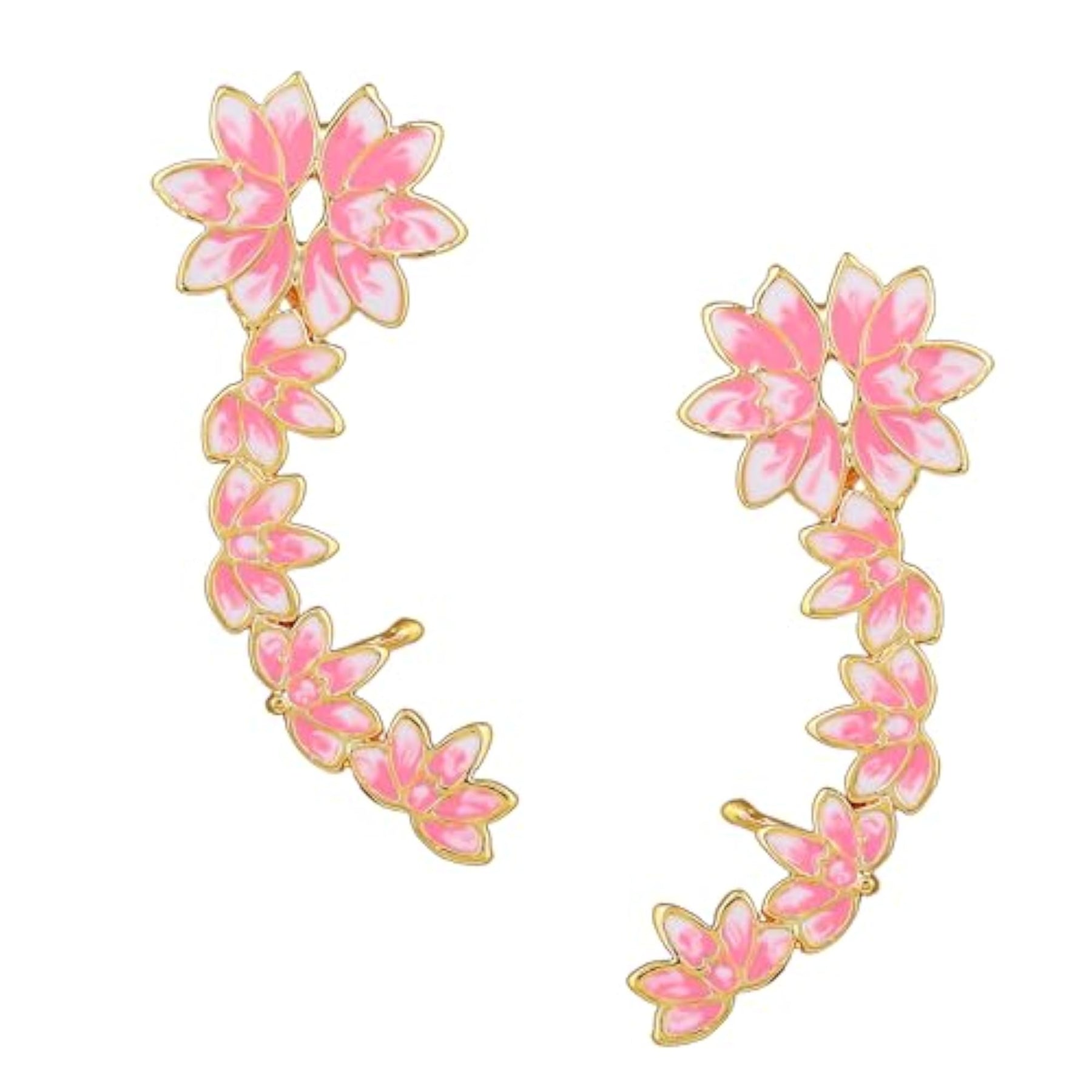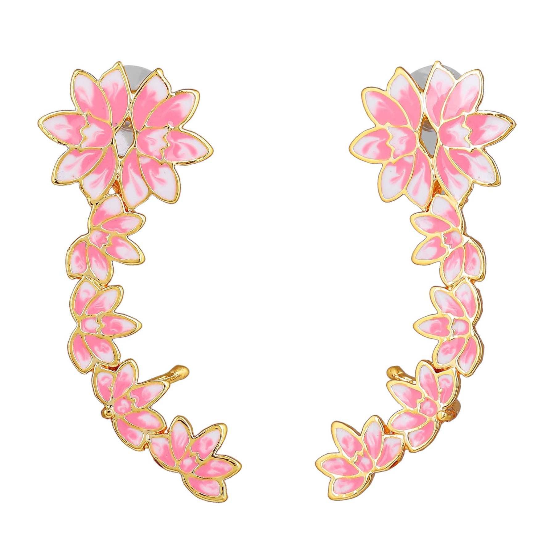 Elegant earrings that feature a plated lotus design in pink with enamel pearl drop for a versatile look.
