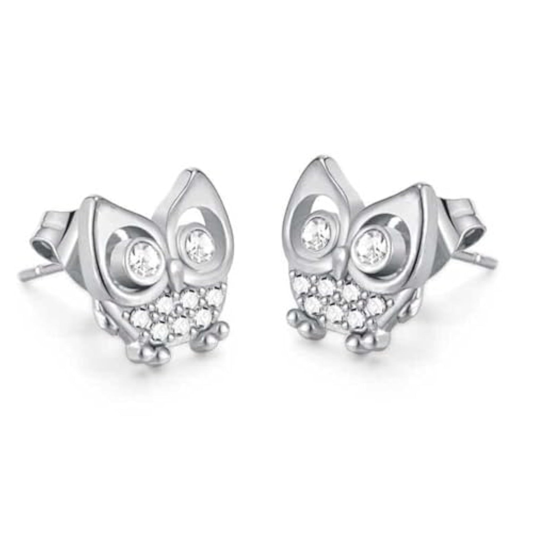 These stylish stud earrings feature an owl design with sparkling cubic zirconia stones. Perfect for adding a touch of glamour to your look.