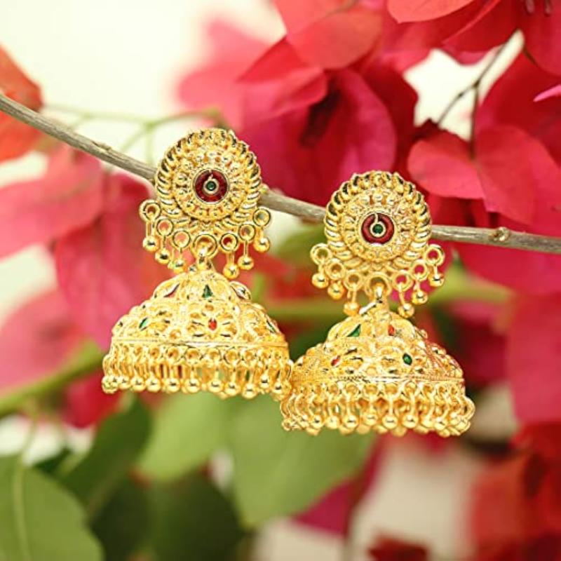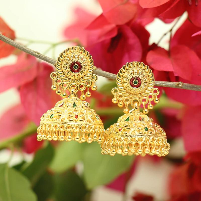 Enhance your style with these traditional plated oxidised alloy jhumki earrings. Perfect for adding a touch of elegance to any outfit.