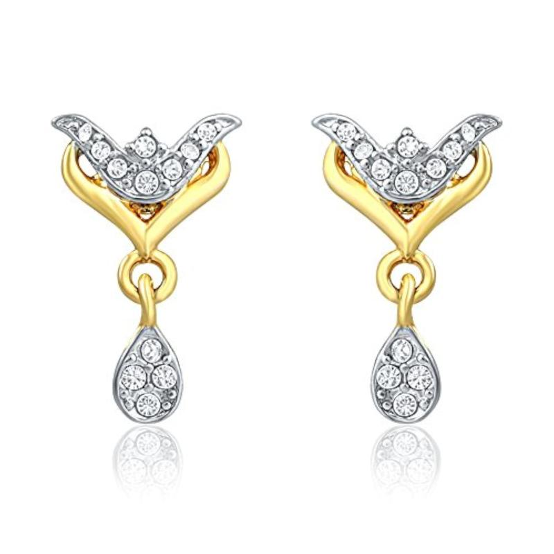 Elegant and stylish plated earrings featuring a sacred knot design with sparkling cubic zirconia stones.