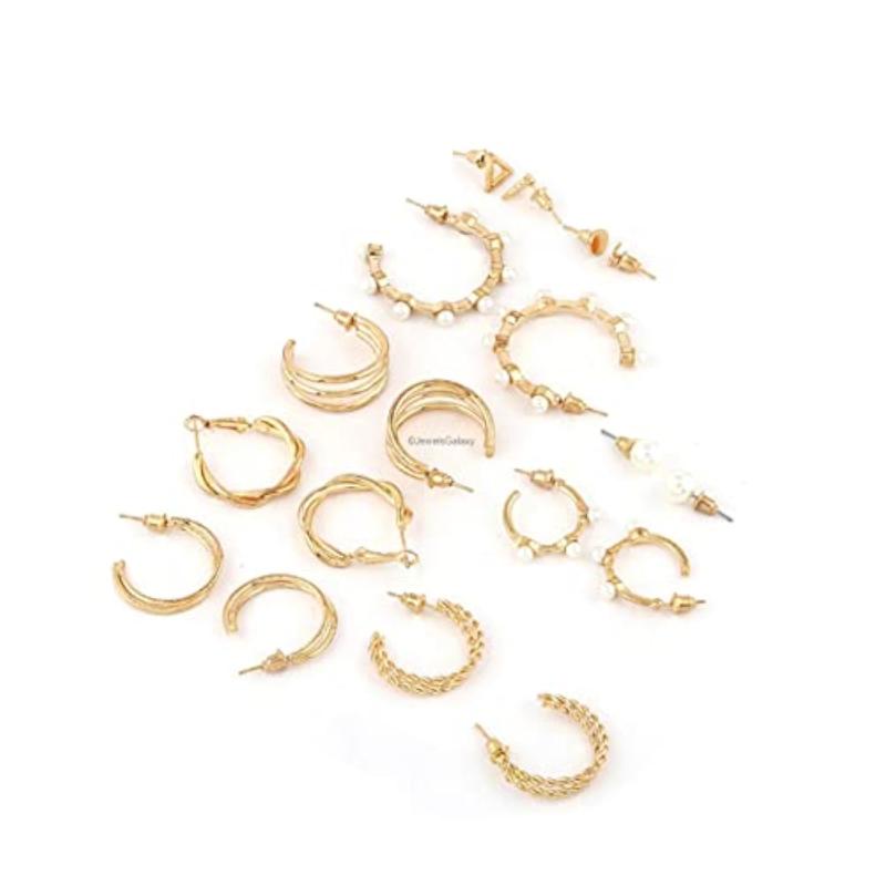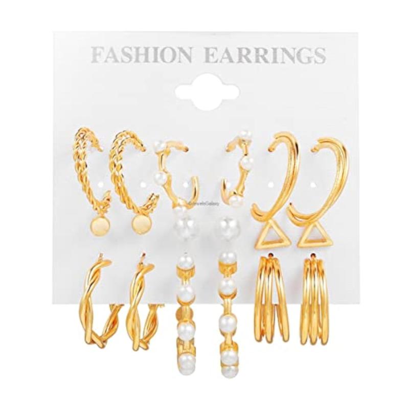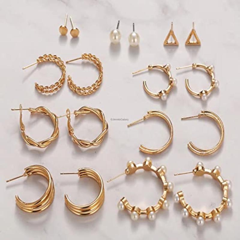 Elevate your style with this set of 9 contemporary hoop earrings in plated-tone finish. These versatile earrings are perfect for any occasion.