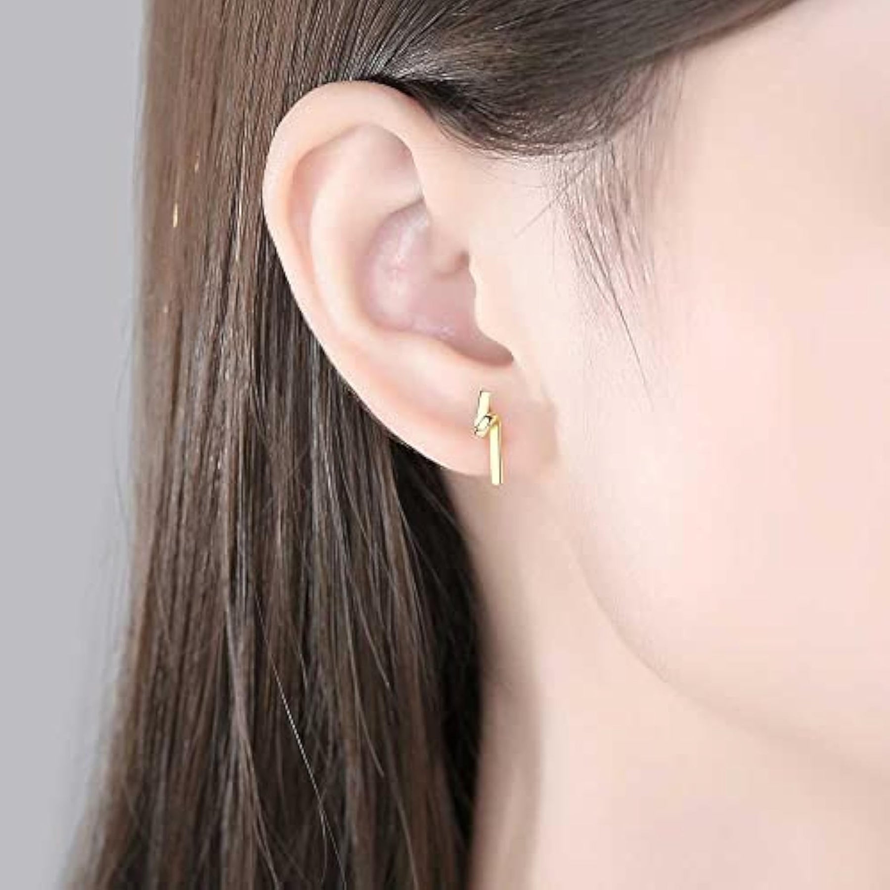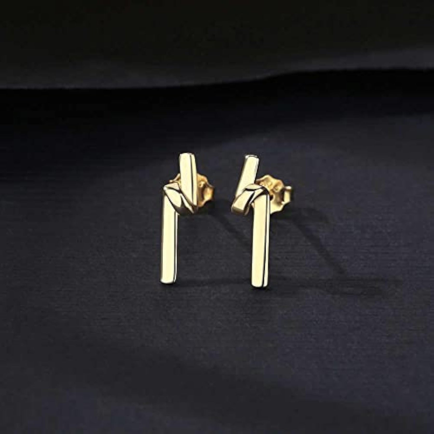 These trendy plated twirl bended stud earrings feature a geometric pattern design. Ideal for girls with flat backs for comfortable wear.