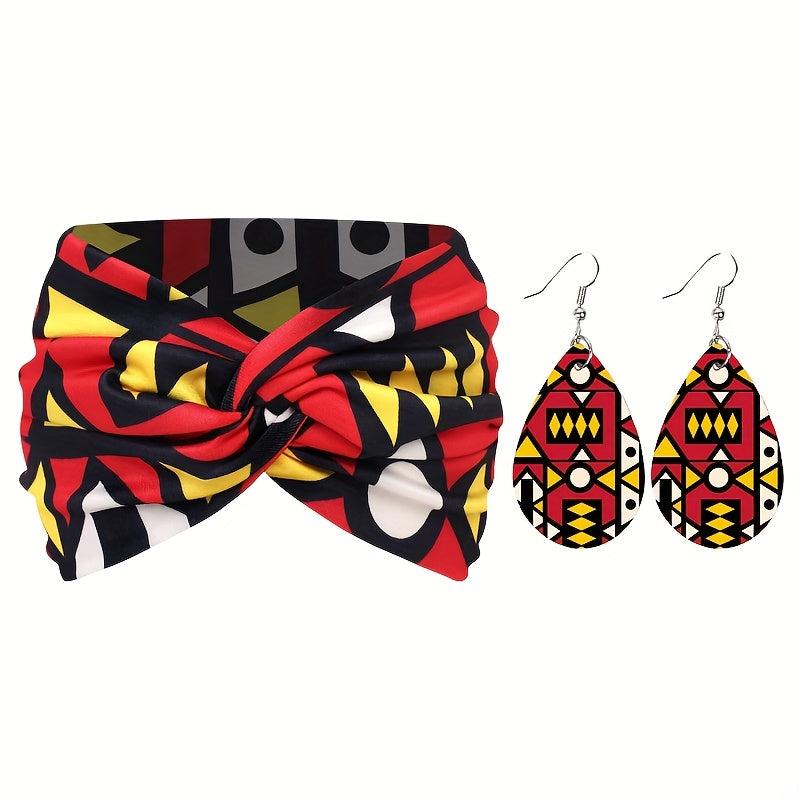 This 2pcs set includes a widened headband and a pair of earrings, perfect for daily use. The headband is stylishly printed, and the earrings complement the look.