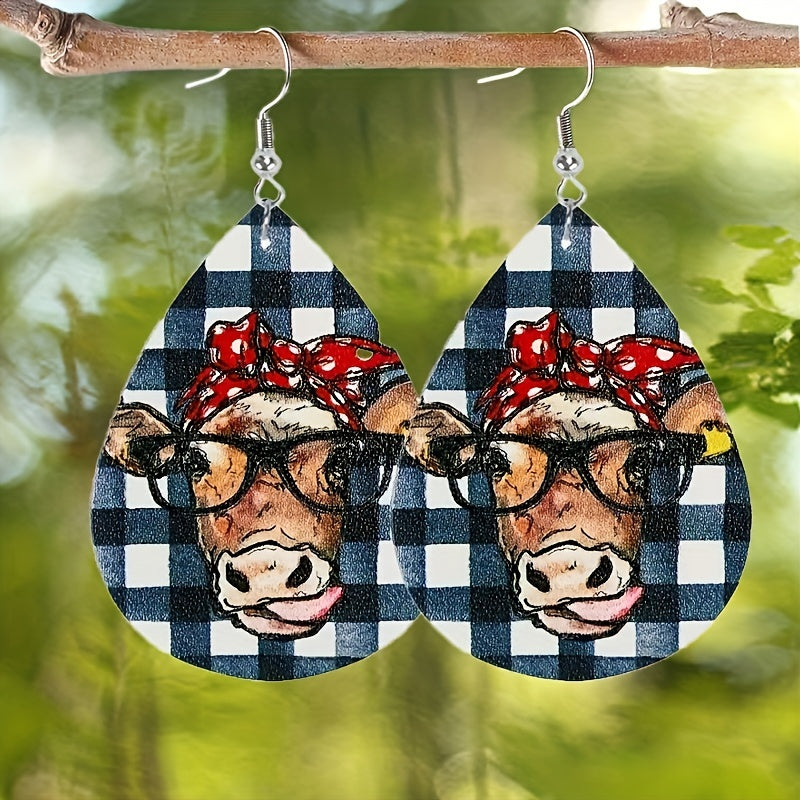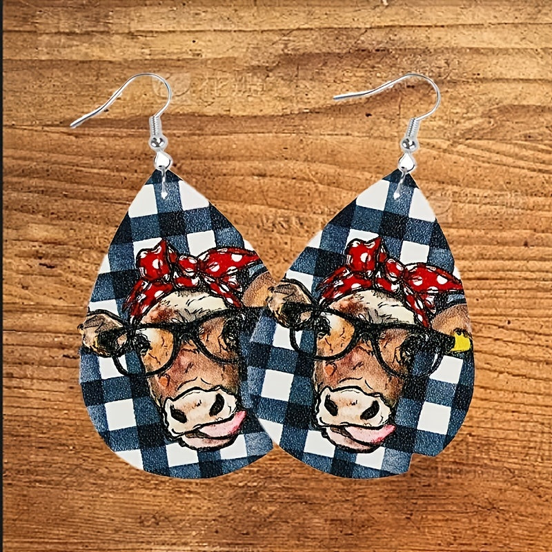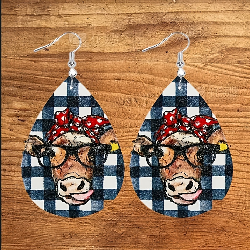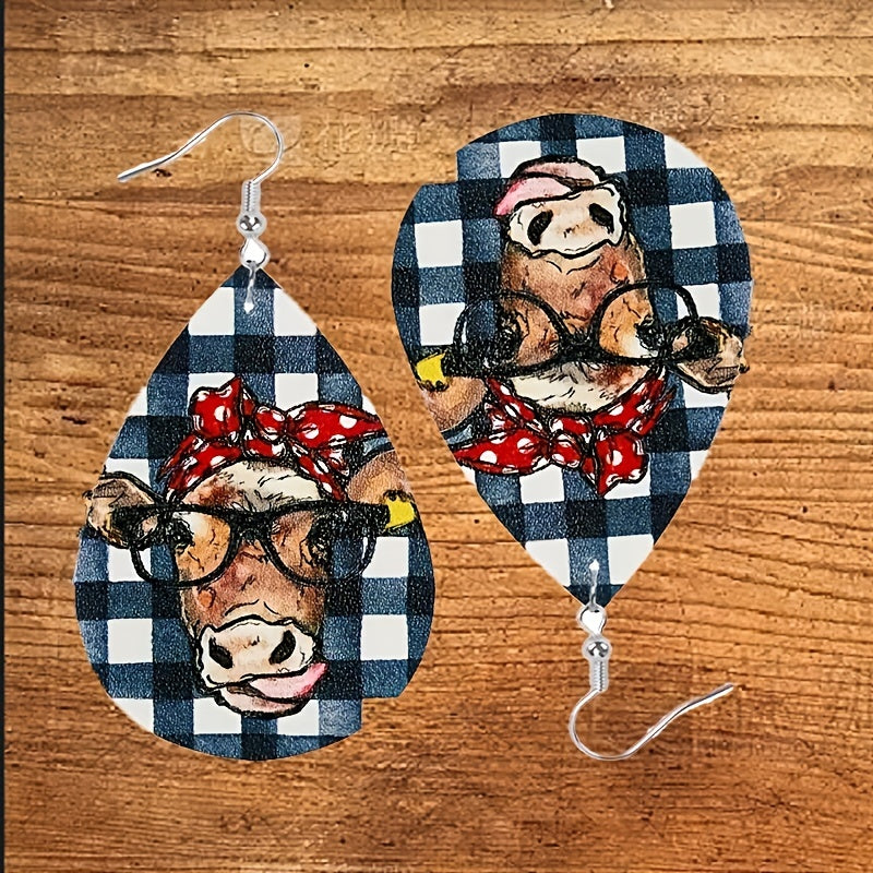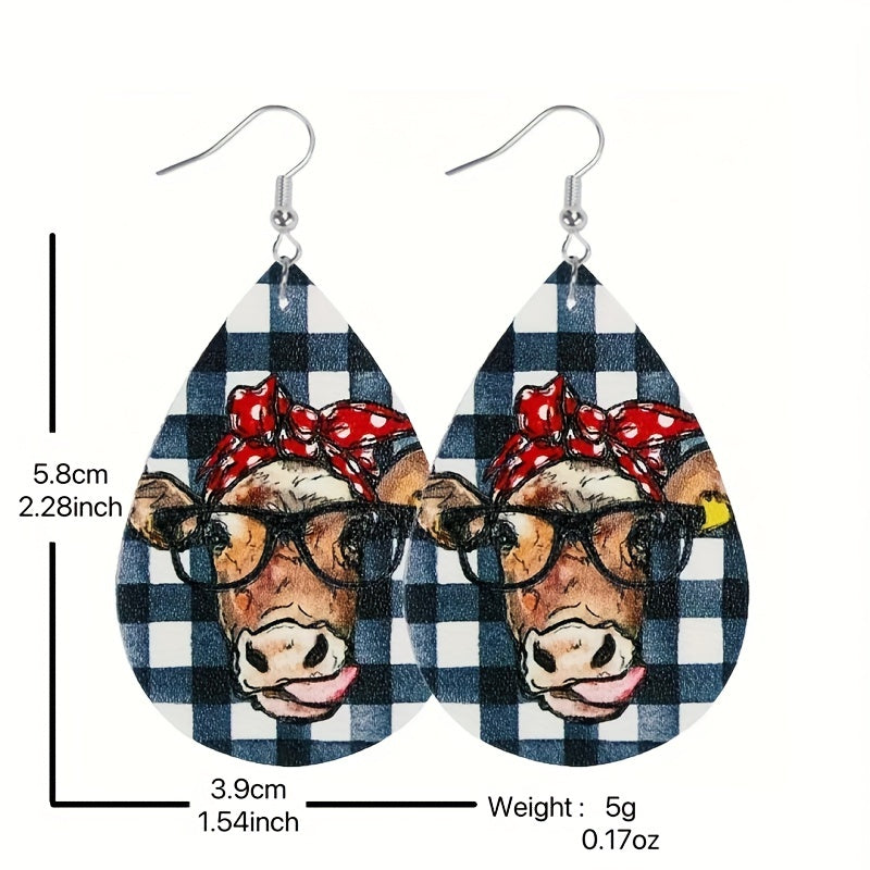 These creative earrings feature bull, chicken, pig, and rabbit patterns on PU leather. Perfect accessories for a unique and stylish look.