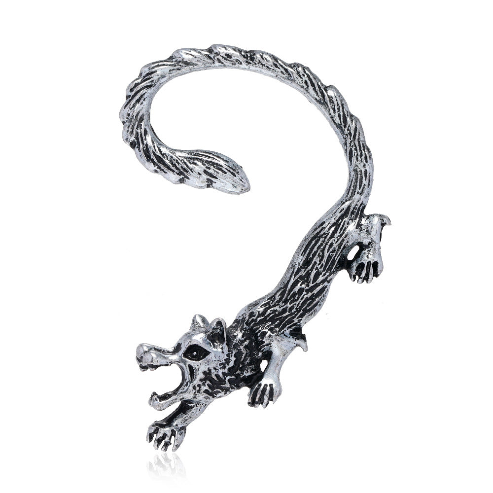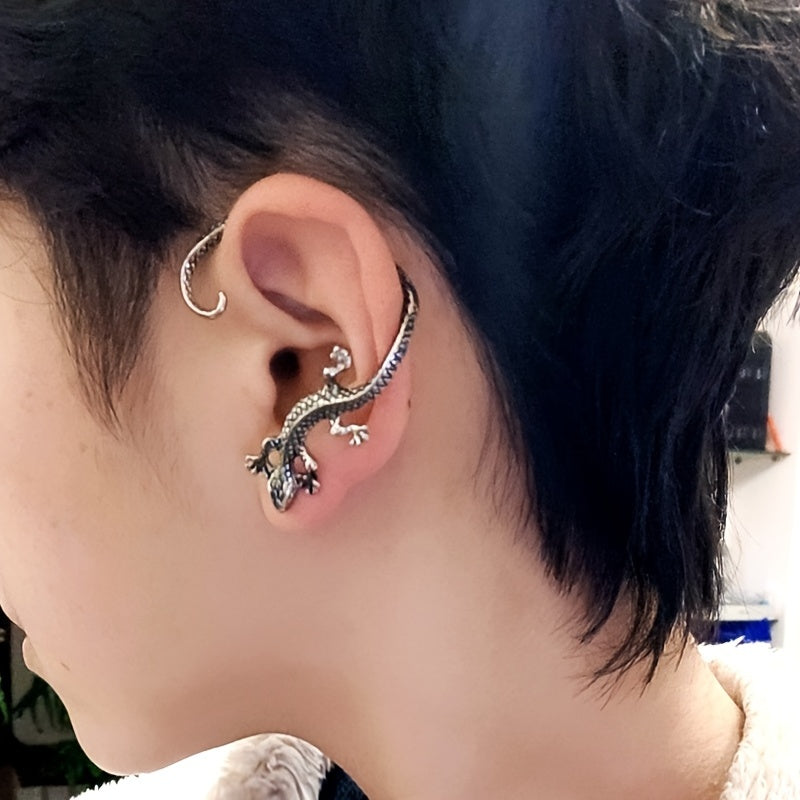 This punk style earring features a lizard dragon shape and a rock wolf silhouette design, perfect for adding a unique touch to your outfit.
