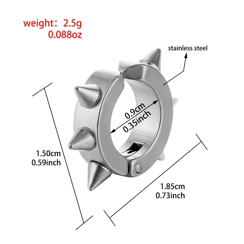This punk rivet spike ear clip is made of stainless steel and titanium steel, perfect for a street hip hop punk look.