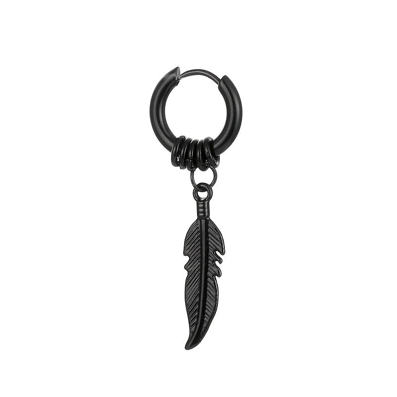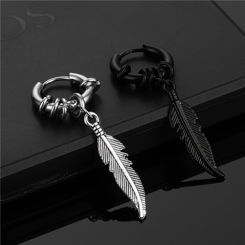 Make a statement with these punk stainless steel feather hoop earrings. Perfect for hip hop style, these vintage dangle earrings will elevate any outfit.
