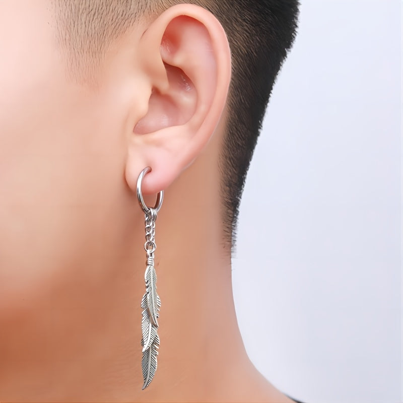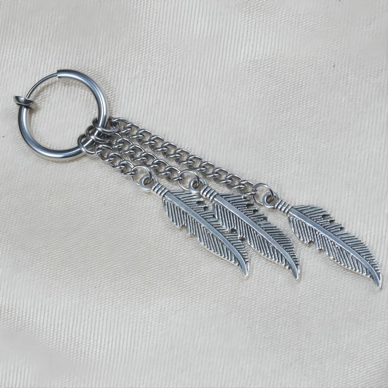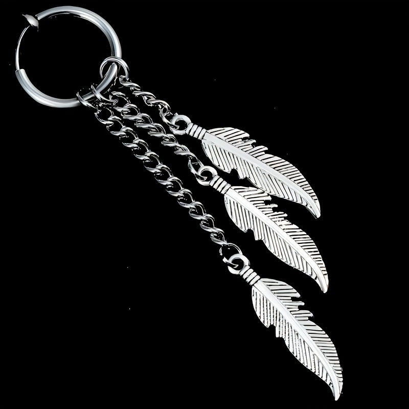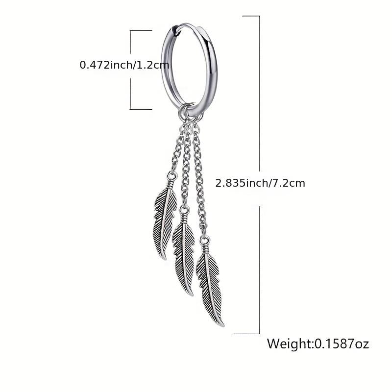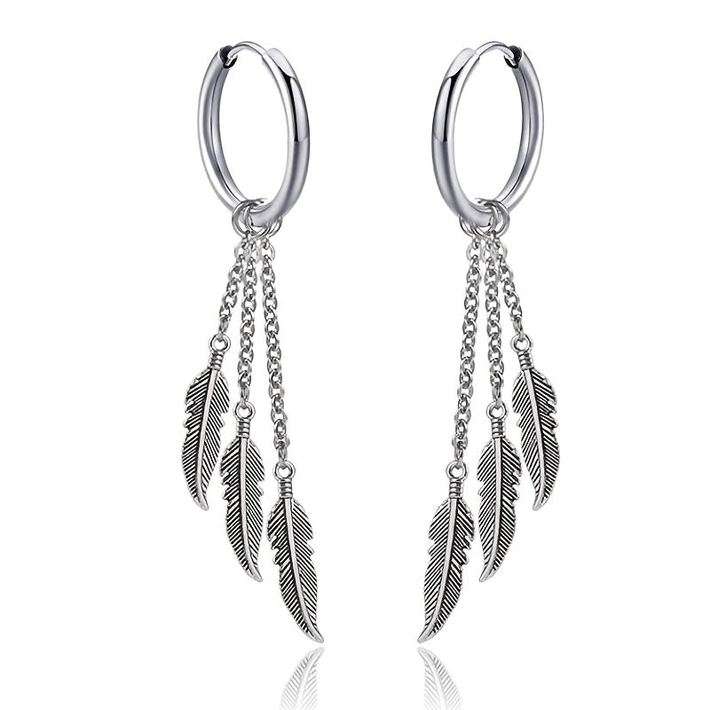 These punk stainless steel earrings feature multiple tassel feathers, perfect for men and women who love hip hop style. Stand out from the crowd with these unique earrings.