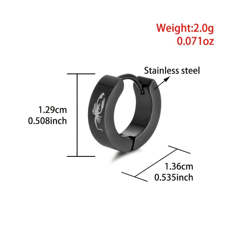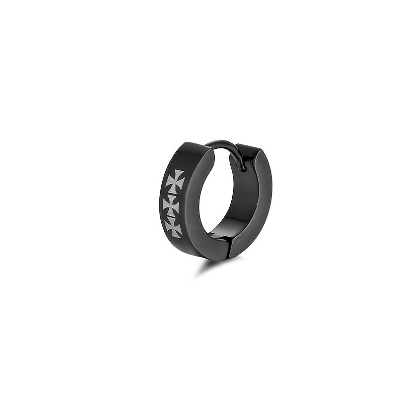 Unique punk style titanium steel ear clip stud earrings designed for men and women. Features a print pattern ear circle.
