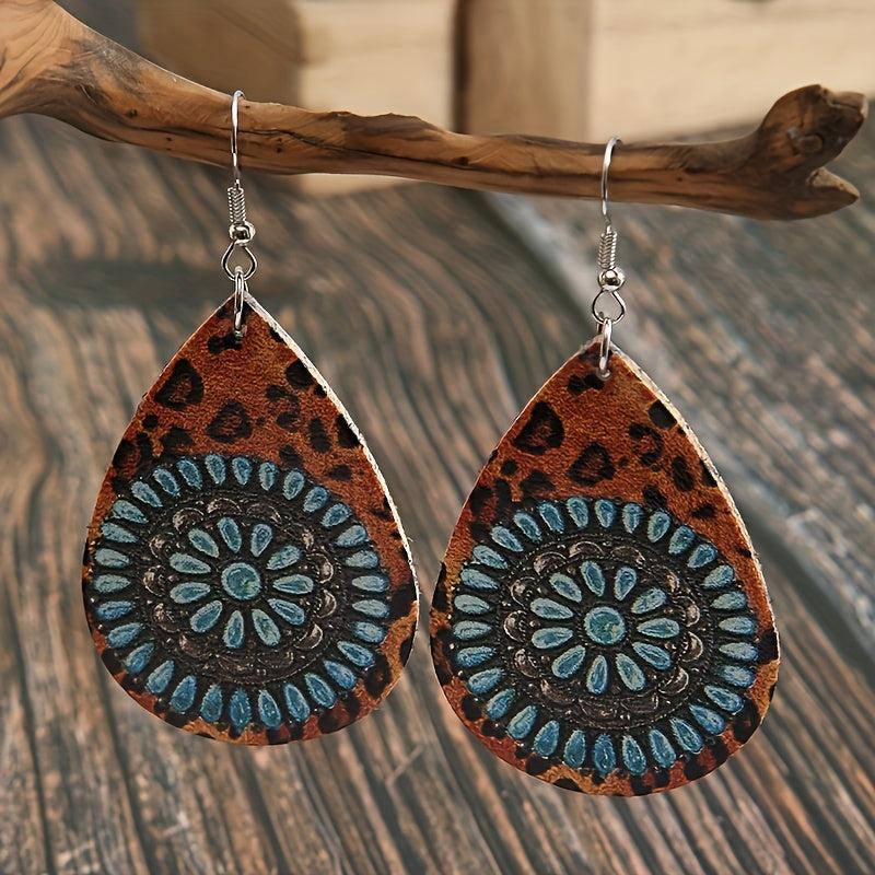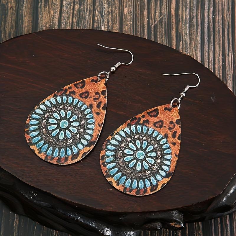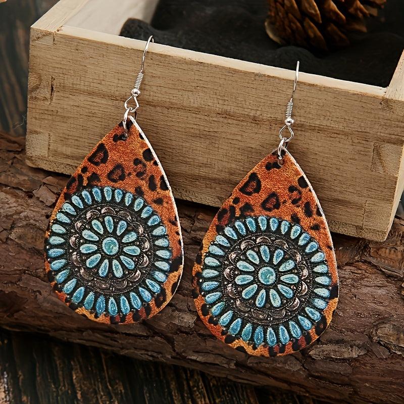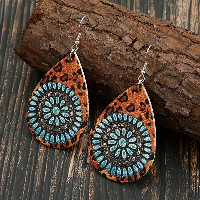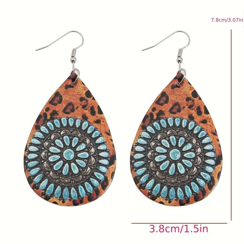 Add some vintage charm to your look with these double-sided teardrop earrings featuring a unique combination of leopard print and turquoise stone. Lightweight and perfect for everyday wear.