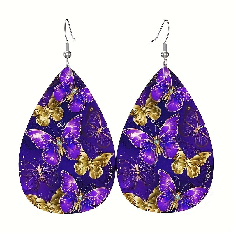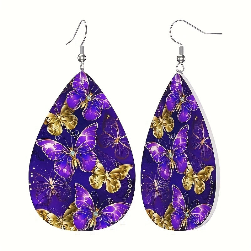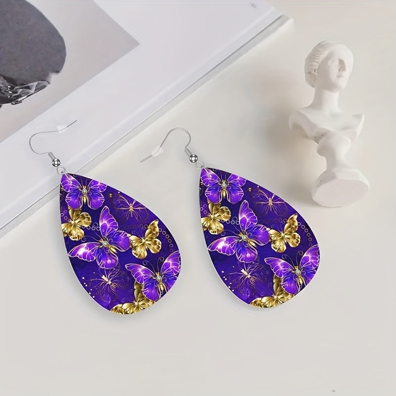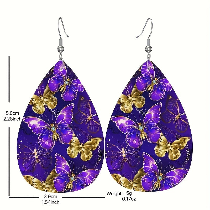 Add a touch of whimsy to your Halloween outfit with these creative purple butterfly pattern earrings. Made of high-quality PU leather, these teardrop-shaped earrings are perfect for parties.