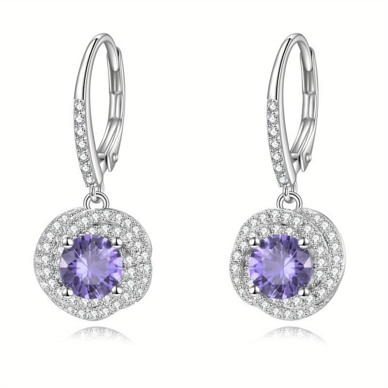 Purple Drop Earrings 925 Sterling Silver Women&