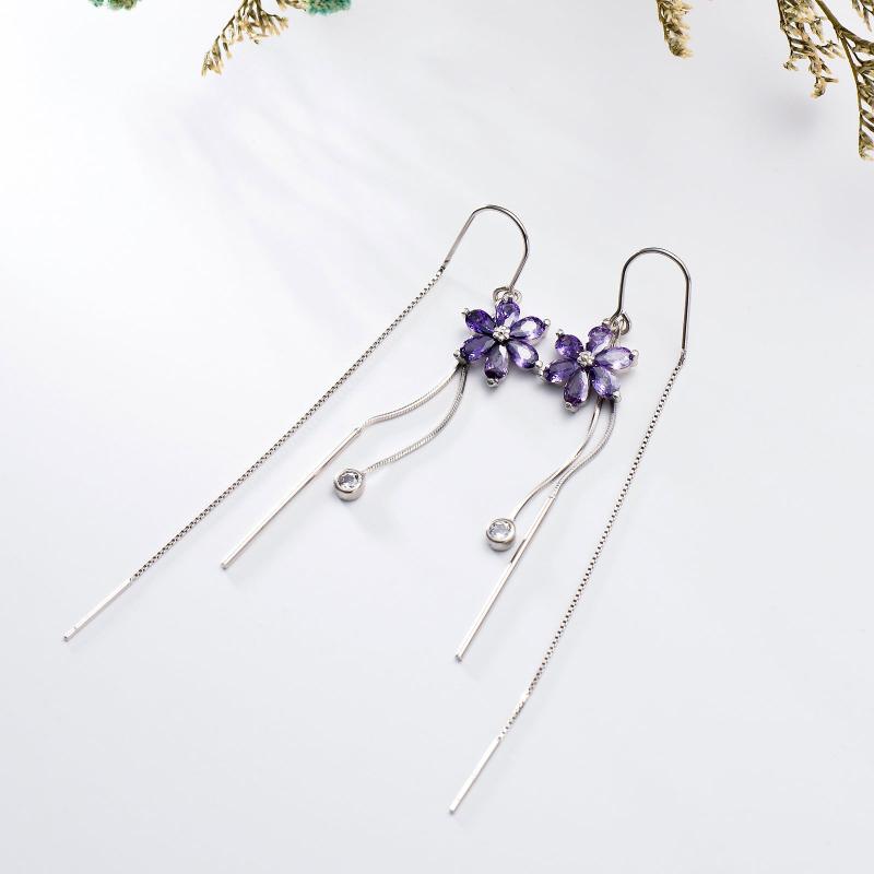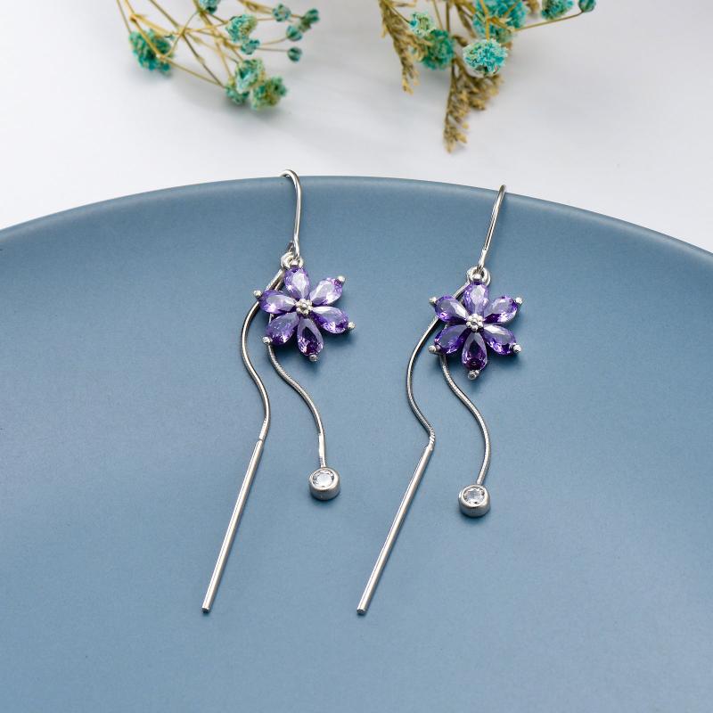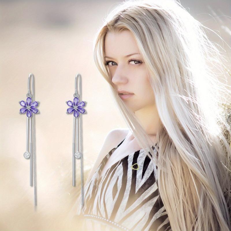 These charming earrings feature purple flower dangles made of synthetic cubic zirconia on 925 sterling silver. The tassel design adds a touch of elegance to any outfit.