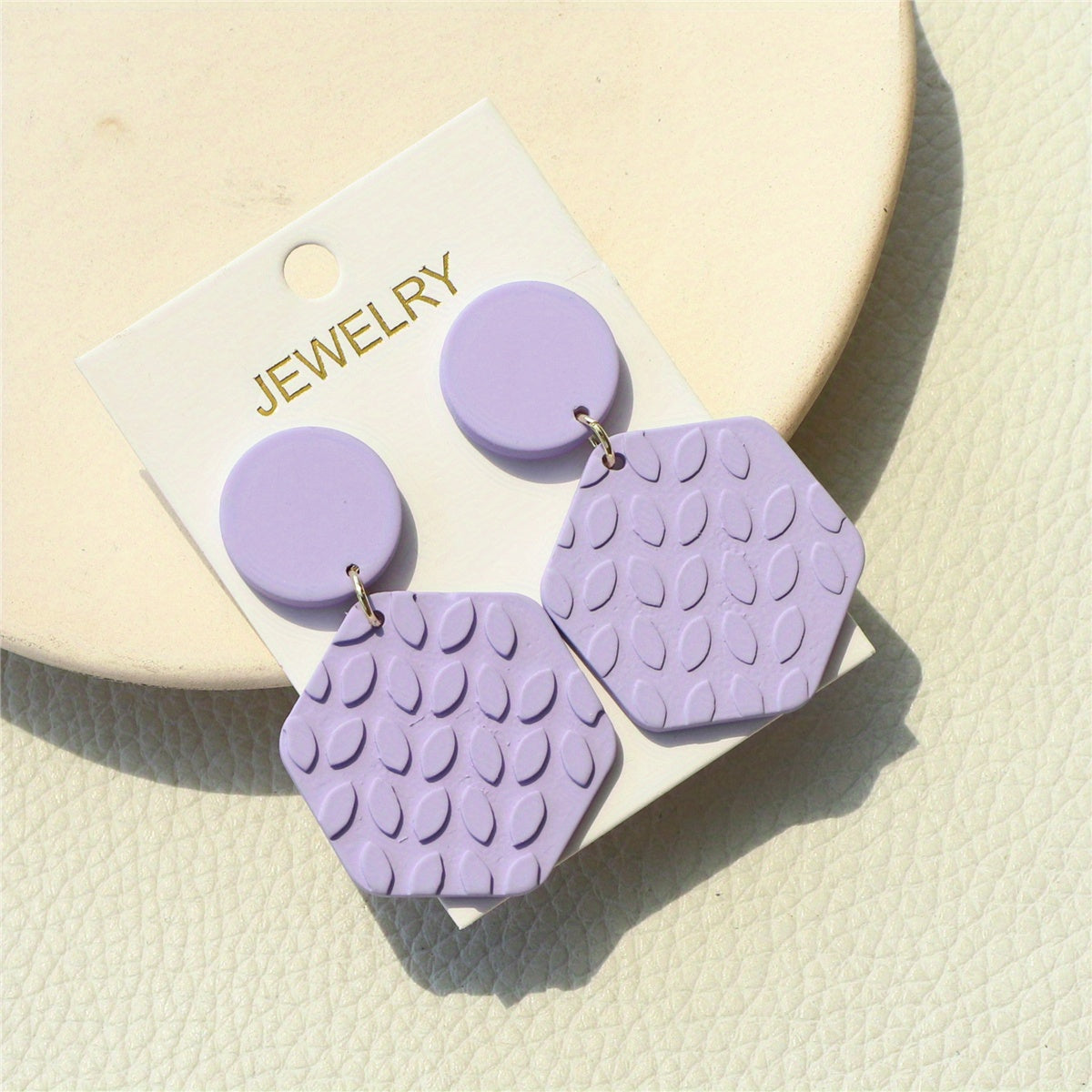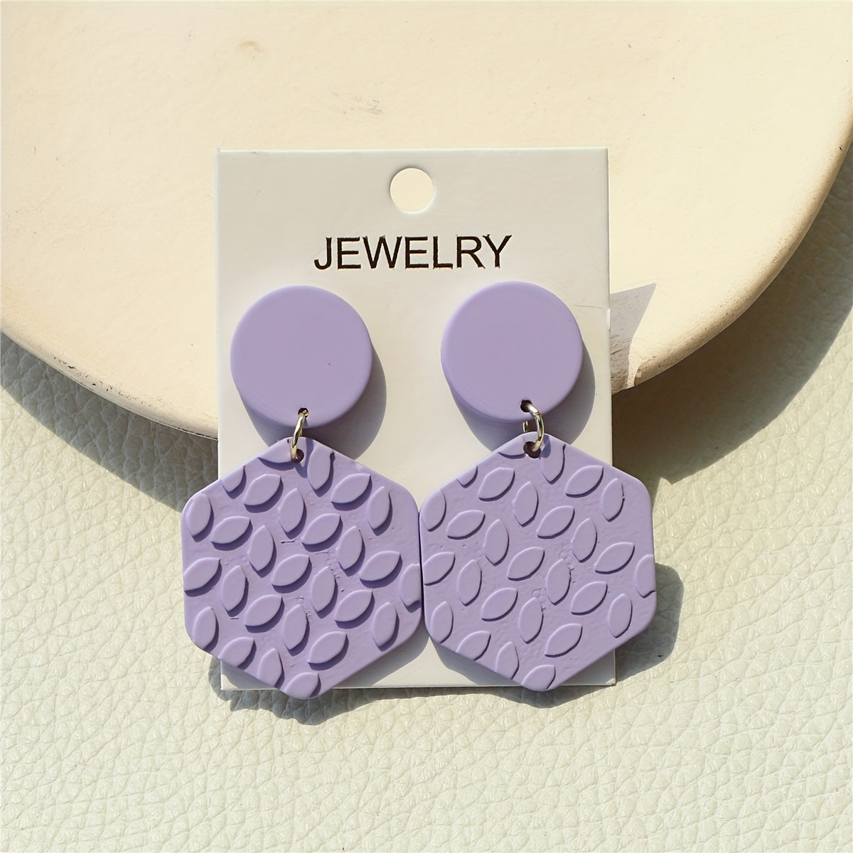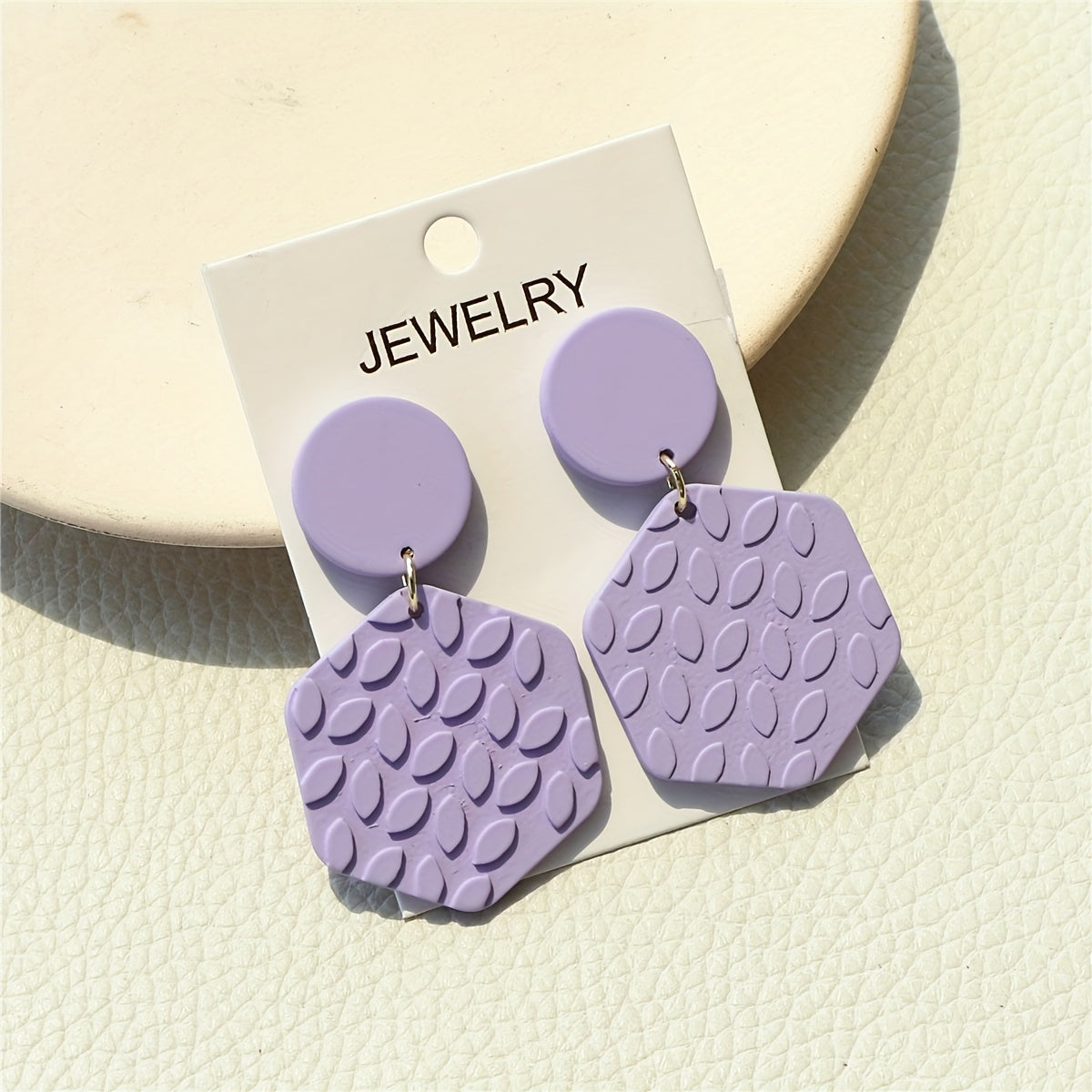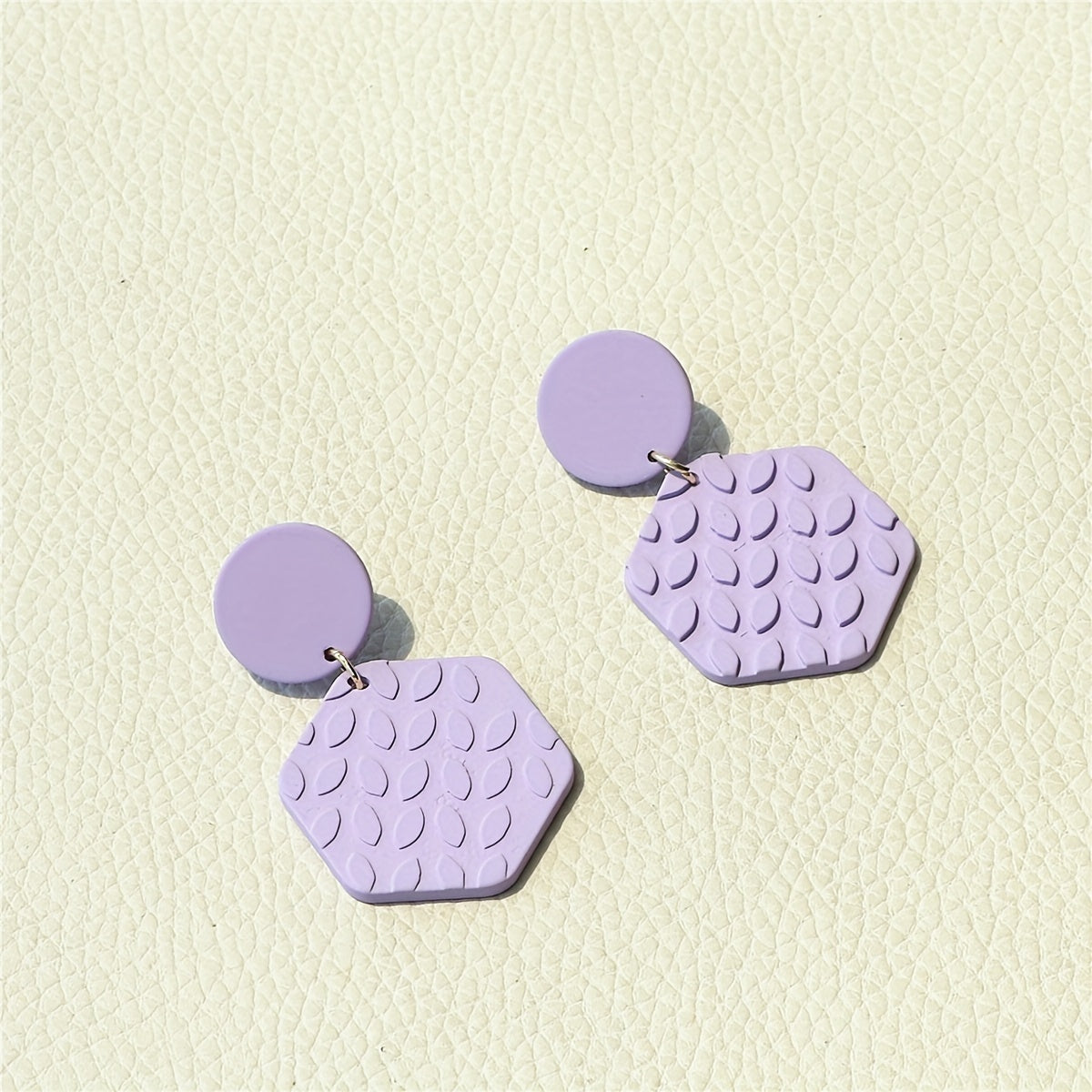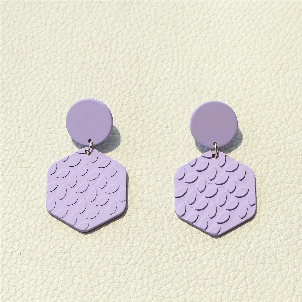 Add a touch of boho style to your look with these acrylic jewel earrings. The hexagonal shape and 3D leaf pattern make them unique and eye-catching.